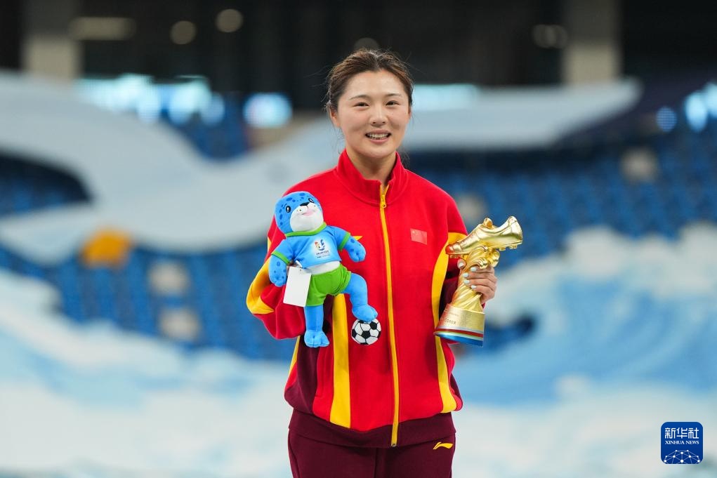 9月27日,獲得最佳守門(mén)員的上海體育大學(xué)女足球員上海體育大學(xué)女足守門(mén)員劉晨在頒獎(jiǎng)儀式上。