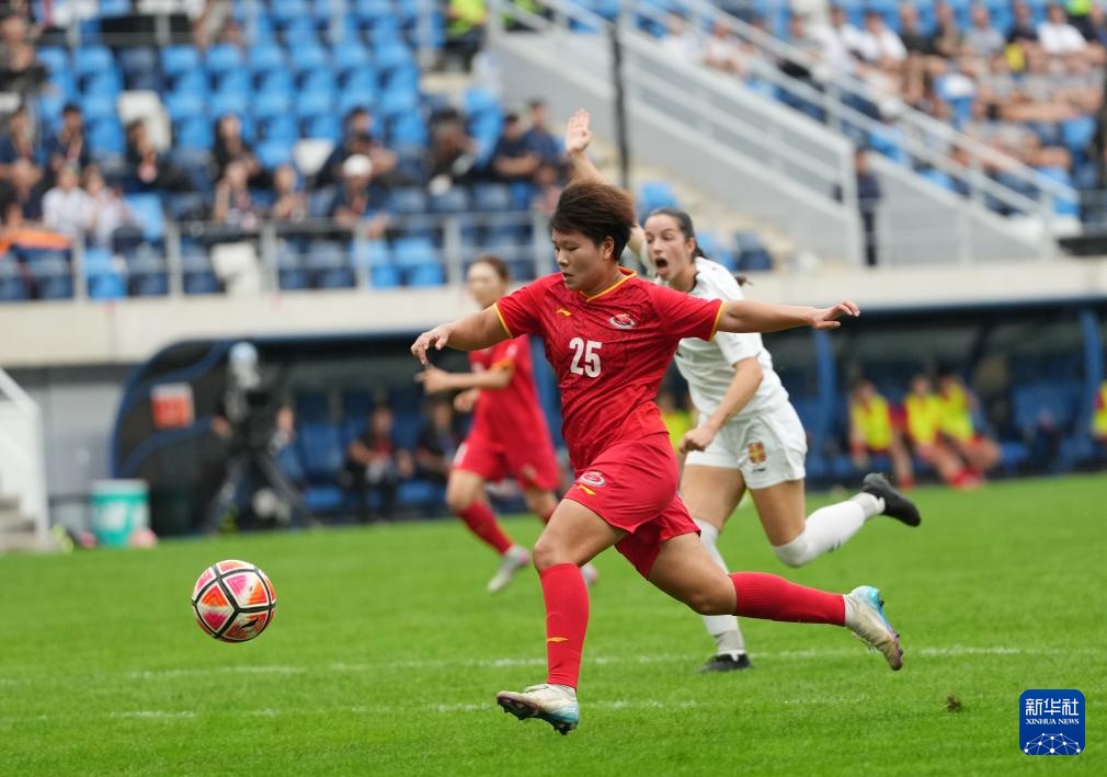9月27日,上海體育大學(xué)女足球員尹麗紅(中)在比賽中。