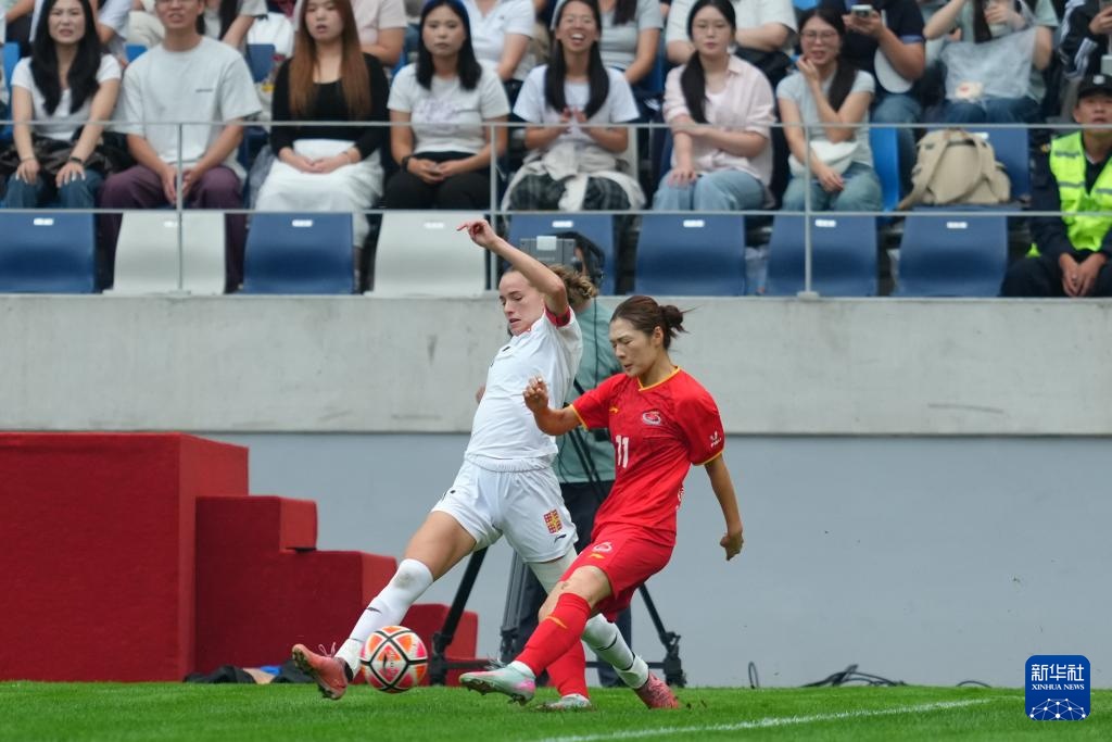 9月27日,觀眾為上海體育大學(xué)女足加油助威。