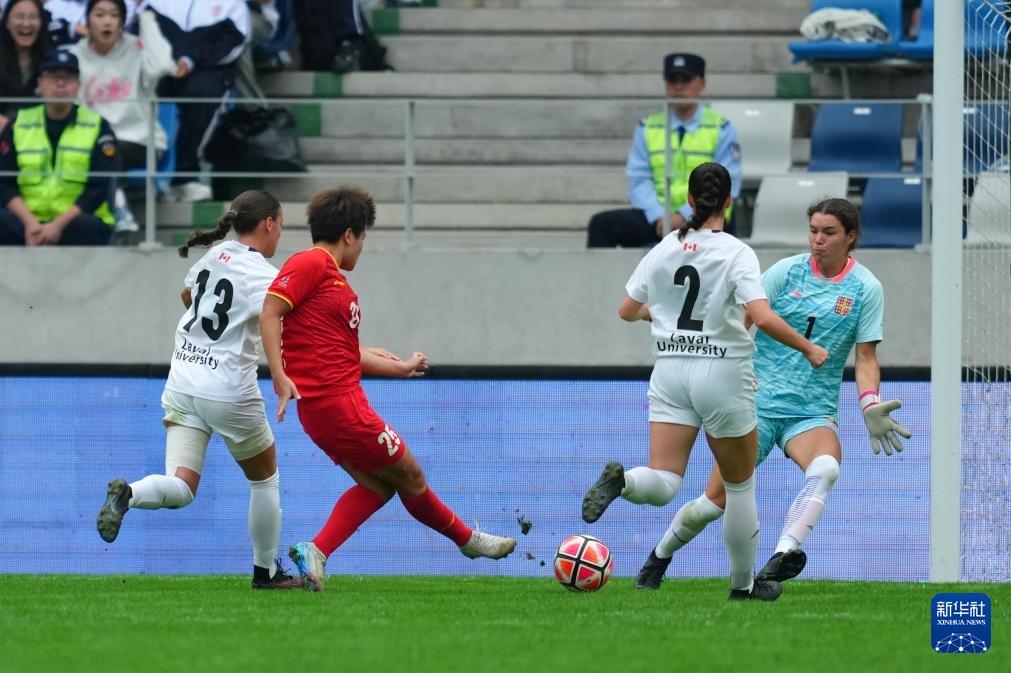 9月27日,拉瓦爾大學(xué)女足球員慶祝進(jìn)球。