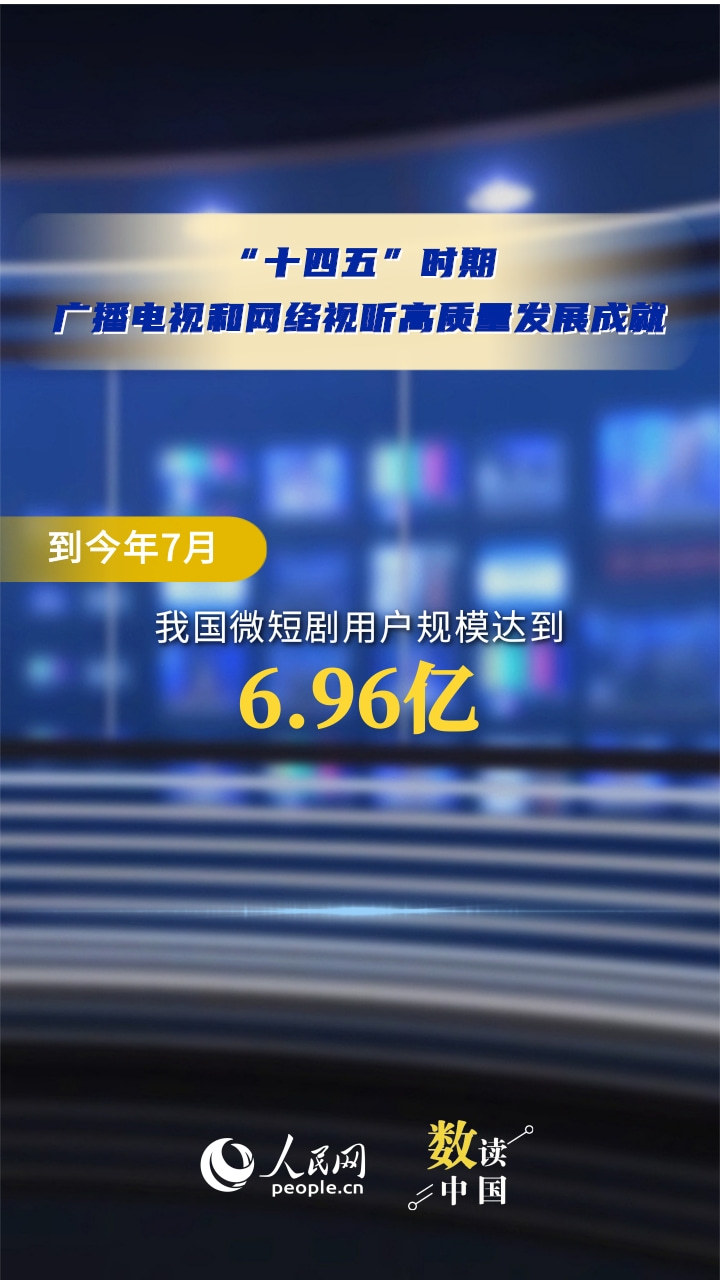 電視大屏用戶合計超10億、網(wǎng)絡(luò)視聽用戶達(dá)10.9億、微短劇用戶規(guī)模達(dá)6.96億……近日,國新辦舉行新聞發(fā)布會介紹,我國在用戶、內(nèi)容、產(chǎn)業(yè)等規(guī)模上已經(jīng)成為廣播電視大國、網(wǎng)絡(luò)視聽大國。6組數(shù)據(jù)看“十四五”時期,我國廣播電視和網(wǎng)絡(luò)視聽高質(zhì)量發(fā)展成就。