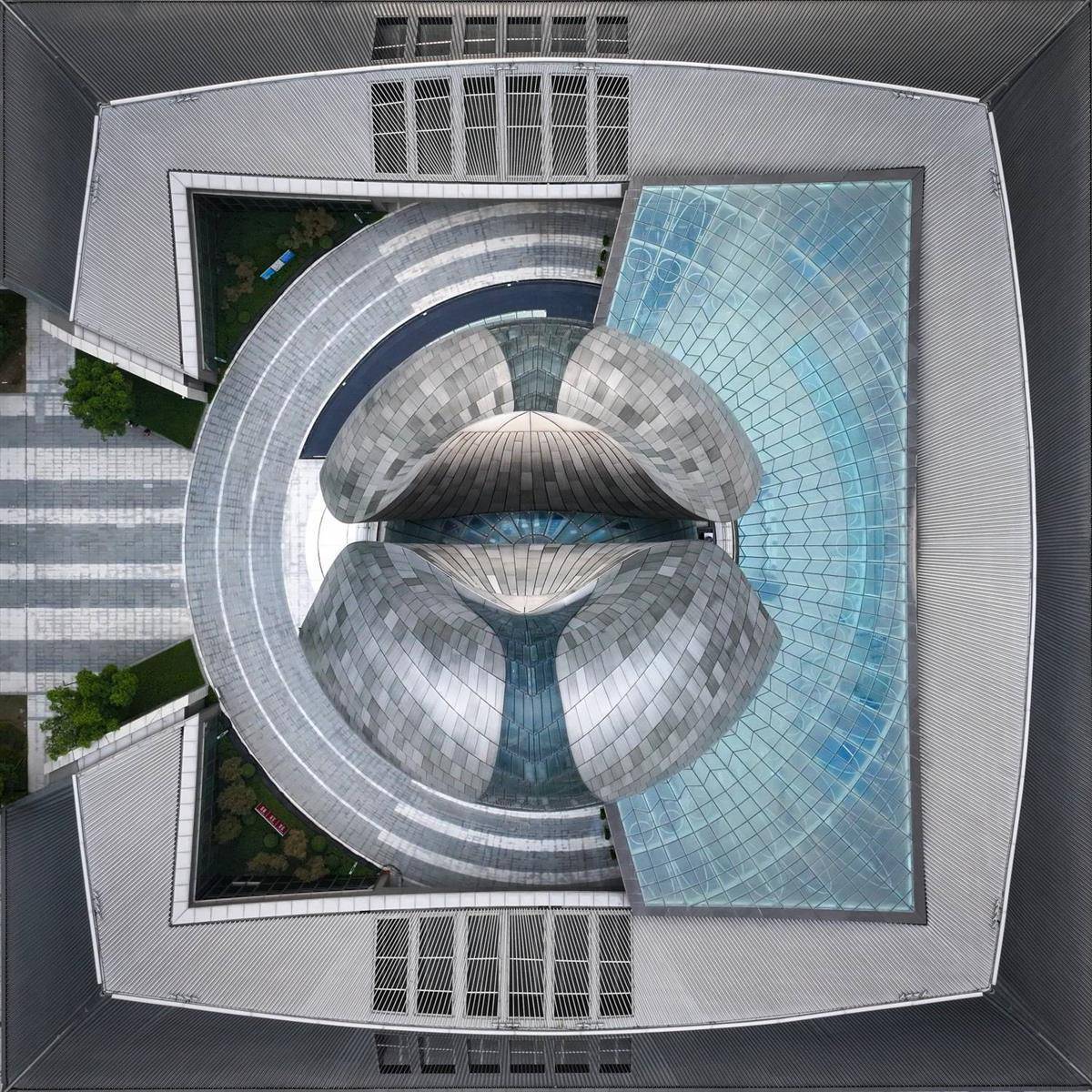 以空中視角聚焦城市建筑之巔——那些形態(tài)各異、匠心獨運的屋頂。它們既是遮風(fēng)避雨的實用構(gòu)件,又是凝固的詩篇、躍動的音符,共同交織出建筑藝術(shù)的幾何韻律。