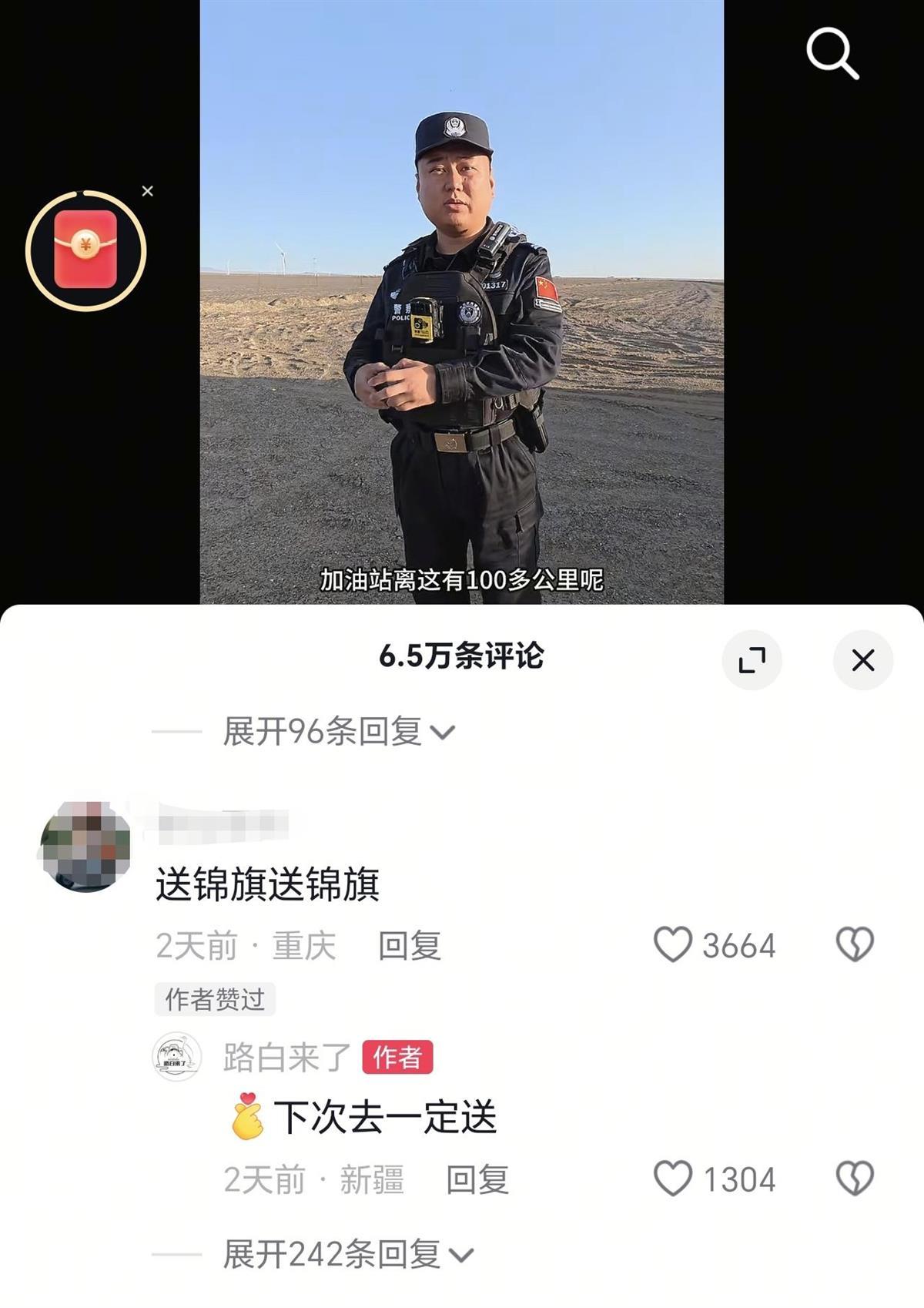 28日下午,極目新聞記者聯系到視頻中參與幫助的大黃水泉邊境派出所副所長李超凡,他介紹說,他是烏魯木齊人,2012年至今從警已經13年了,多年來一直在邊境派出所工作,9月24日他和2名同事外出巡邏,正好碰到有人報警求助,由于當地地廣人稀,他們外出執勤巡邏時一般會攜帶備用的燃料,剛好派上了用場。對于該視頻在網絡上的爆火,他表示很意外,“就是一次普通的救助,這是我們應該做的事,我們這里到處是荒漠和戈壁,有些游客遇到陷車、迷路、沒油等情況都會給他們打電話求助”。