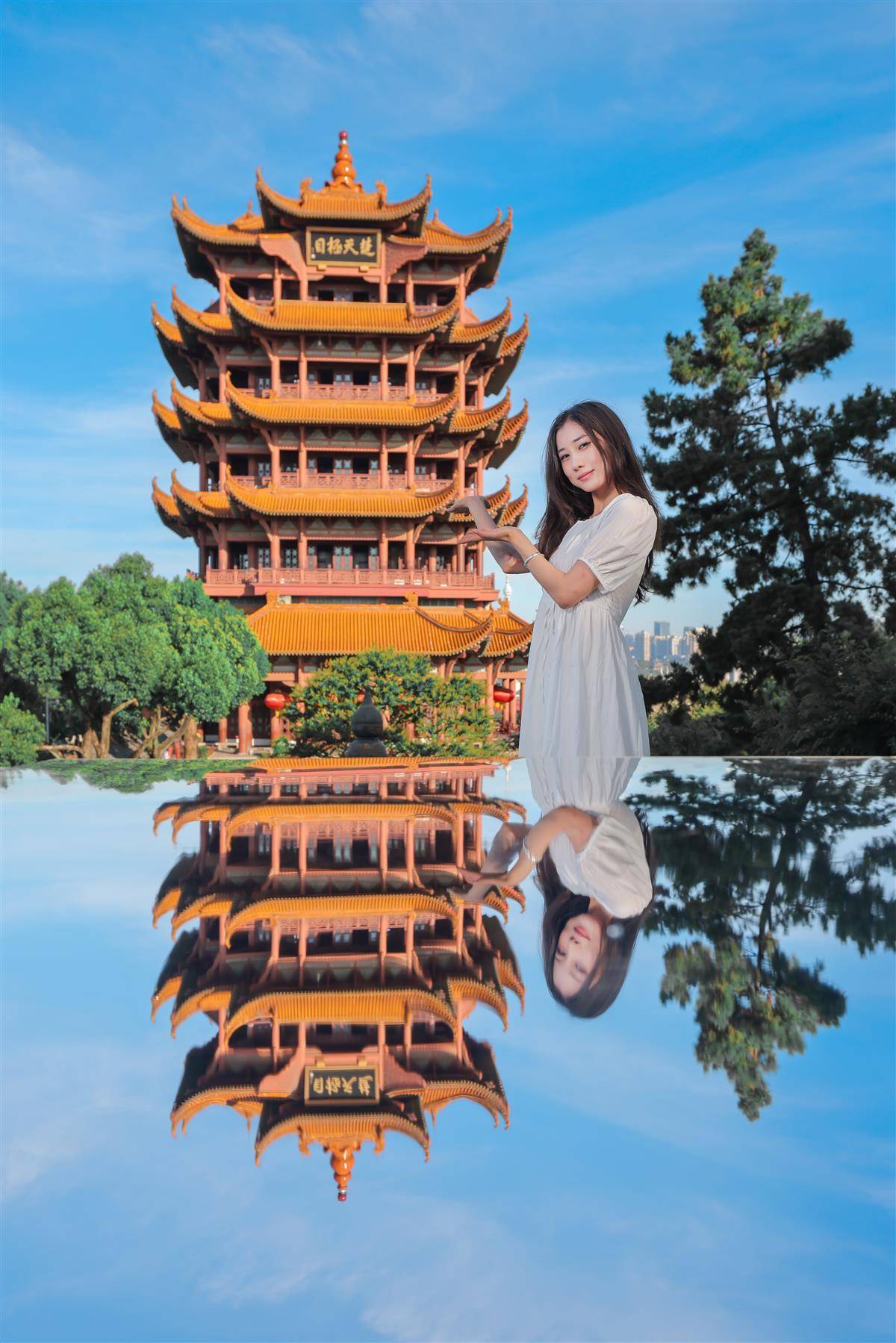 黃鶴樓公園新增“天空之境”,清澈的鏡面完美倒映著千年名樓,游客能完美拍攝與黃鶴樓同框的倒影照片。(景區供圖)