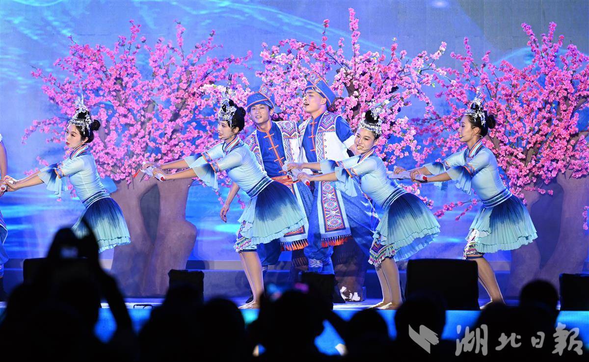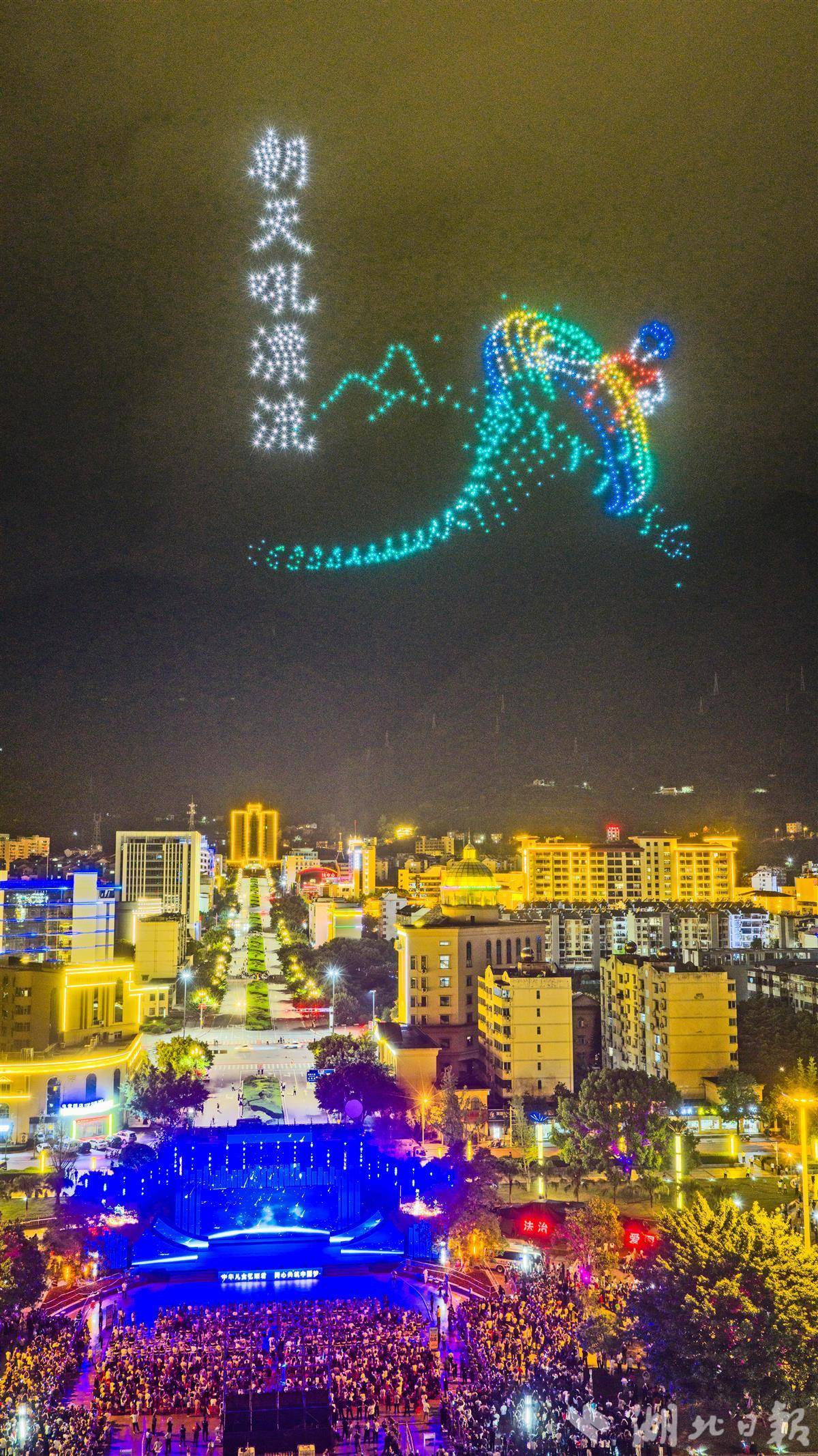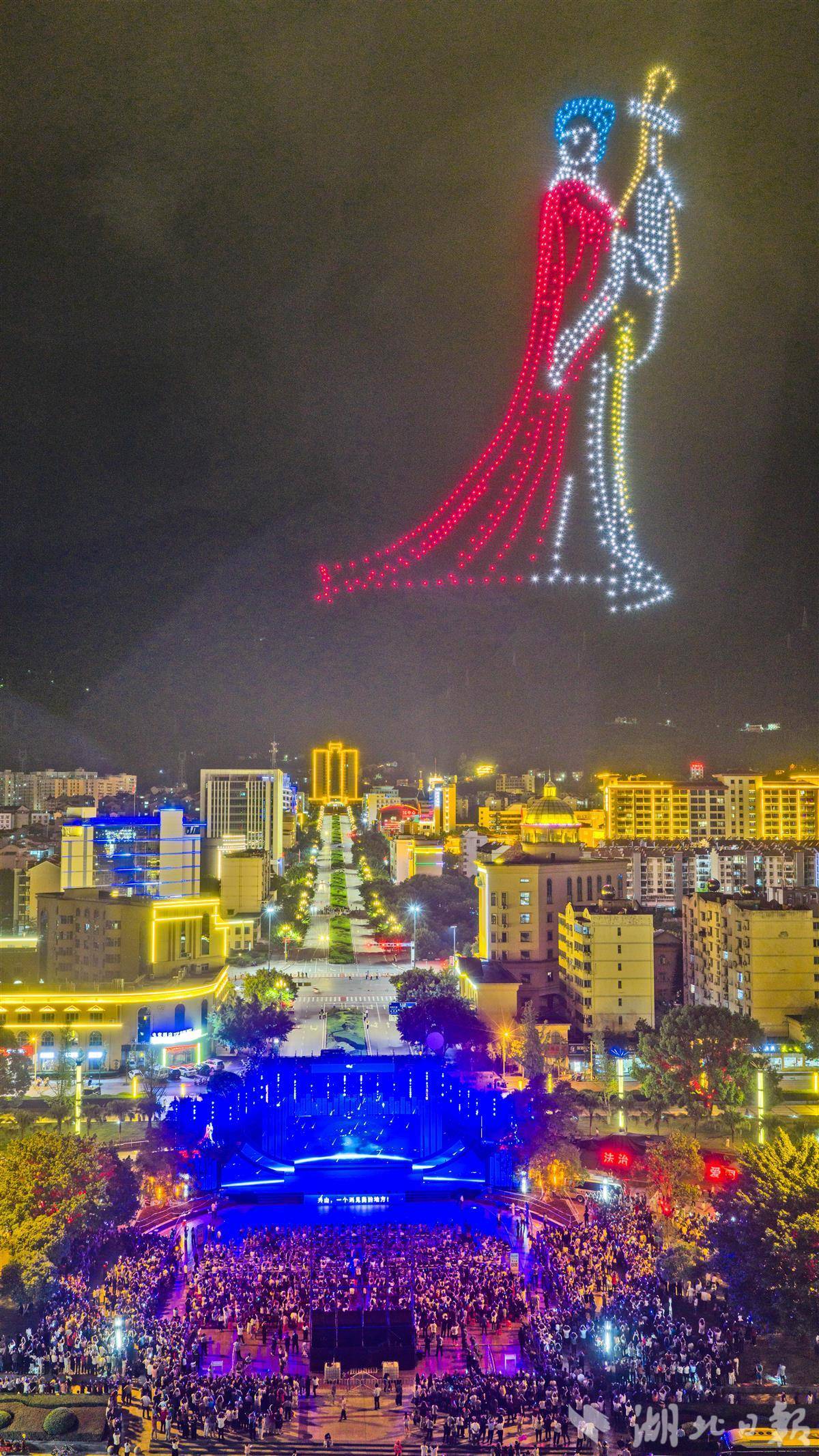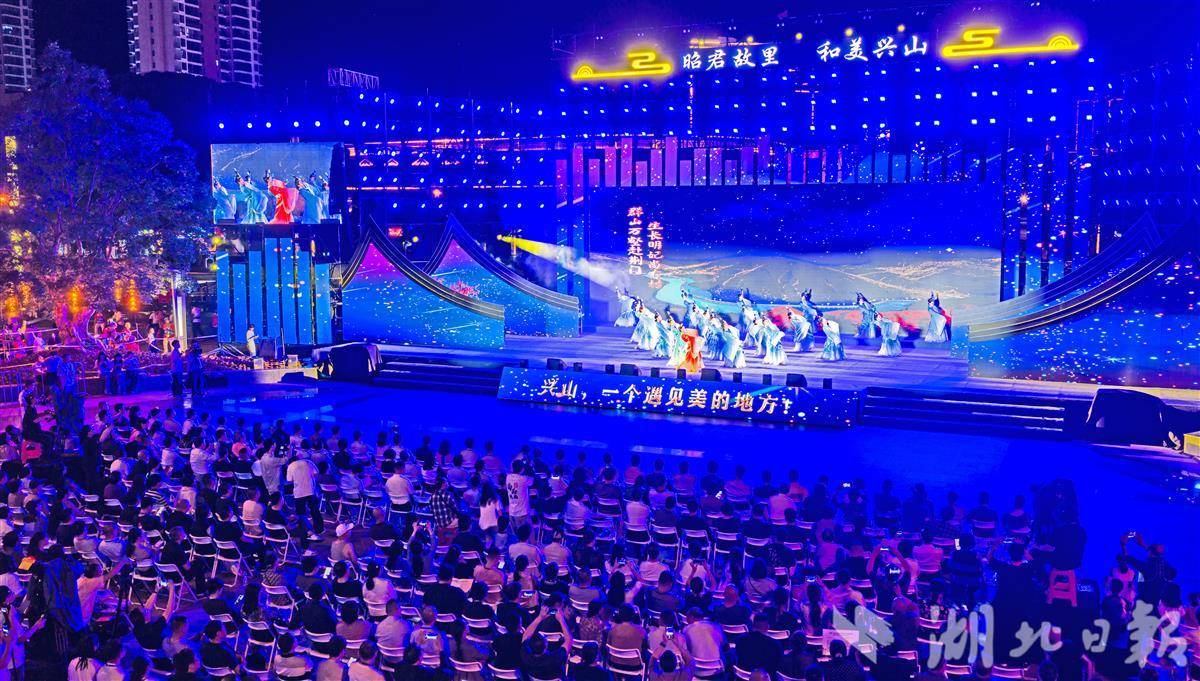 開幕式上,臺灣苗栗縣、內蒙古呼和浩特等地藝術家同臺獻藝,興山同步發布以“興”為骨架的城市LOGO、“少女昭君”等城市IP 形象,以及“昭君故里 和美興山”主題口號與系列宣傳語。千架無人機以夜空為幕,演繹城市LOGO、地標及特色產業,呈現科技與人文交融的視覺盛宴。