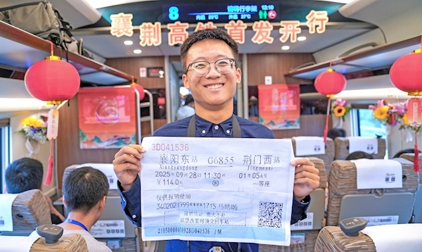 楚天都市報極目新聞訊(記者黃永進(jìn) 實習(xí)生曹亞丹 李秉坤)“快上車,襄荊列車要發(fā)車了!”9月28日11時30分,隨著G6855次智能復(fù)興號動車組列車啟動,襄陽至荊門高速鐵路正式開通運(yùn)營。至此,湖北省內(nèi)形成“漢口至漢口”快速客運(yùn)鐵路環(huán)線,為便利沿線群眾出行、帶動周邊地區(qū)經(jīng)濟(jì)發(fā)展注入了新動能。