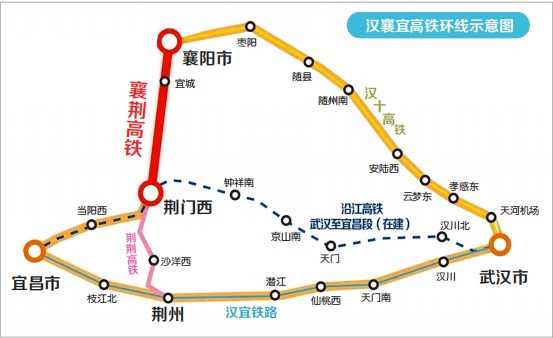 作為一條重要的區(qū)域連接線,襄荊高鐵在湖北省內(nèi)還與荊門至荊州高鐵、漢宜鐵路(漢口至荊州)、武漢至十堰高鐵(漢口至襄陽東)首尾相連,形成了“漢口至漢口”的快速客運(yùn)鐵路環(huán)線,串聯(lián)起武漢、孝感、隨州、襄陽、荊門、荊州、潛江、仙桃等城市。