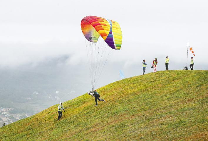 秋陽漫過圣境山的山脊,最后一具滑翔傘緩緩收攏。