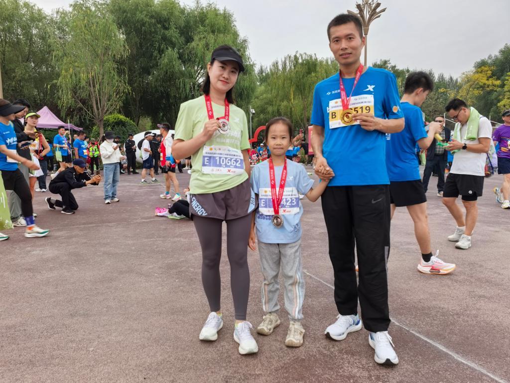 計曉媛(左)一家三口都來參加馬拉松賽。