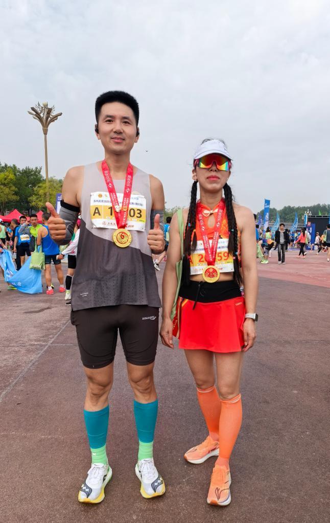47歲的廣東跑者孫丹(左)與寧夏跑友合影。