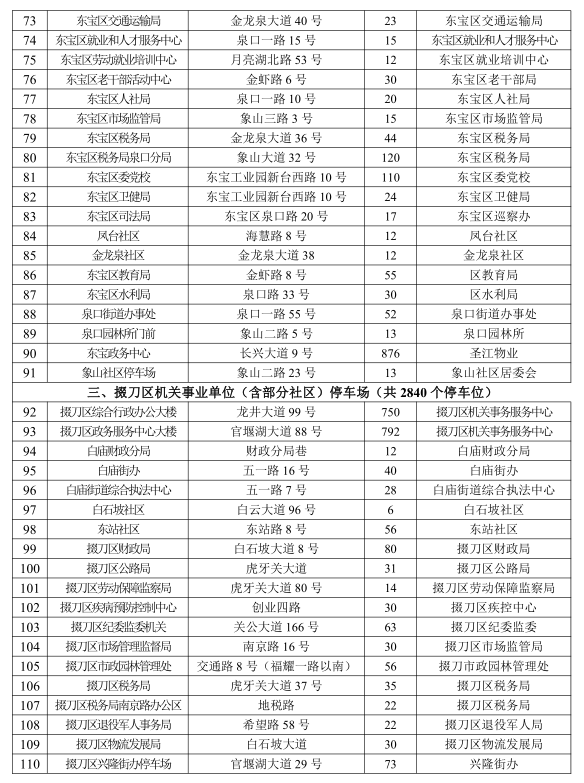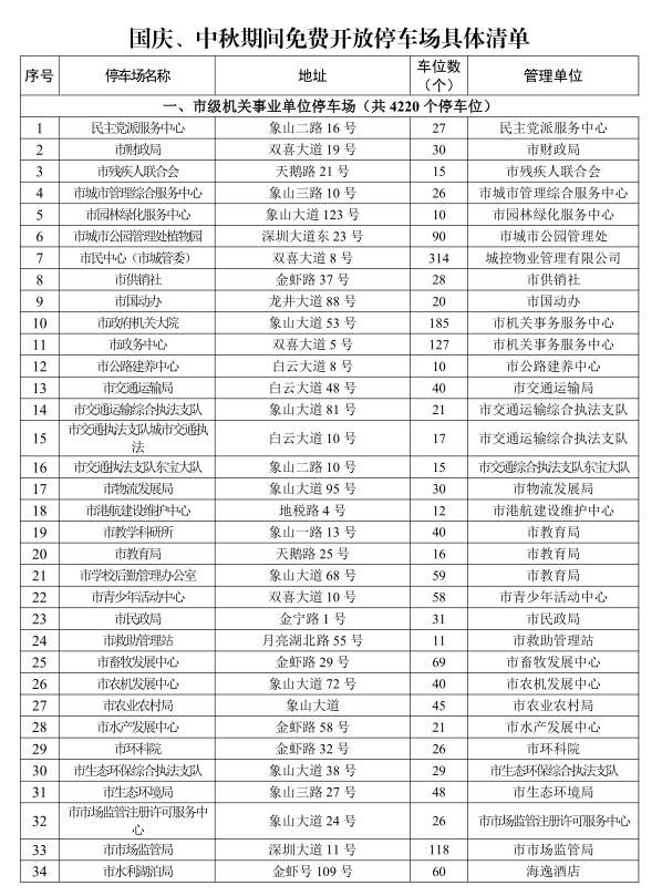 國慶、中秋期間免費開放停車場具體清單。通訊員 供圖