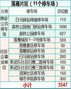 落雁片區(qū)設(shè)有11個(gè)停車場(chǎng),共3547個(gè)停車泊位可供選擇。