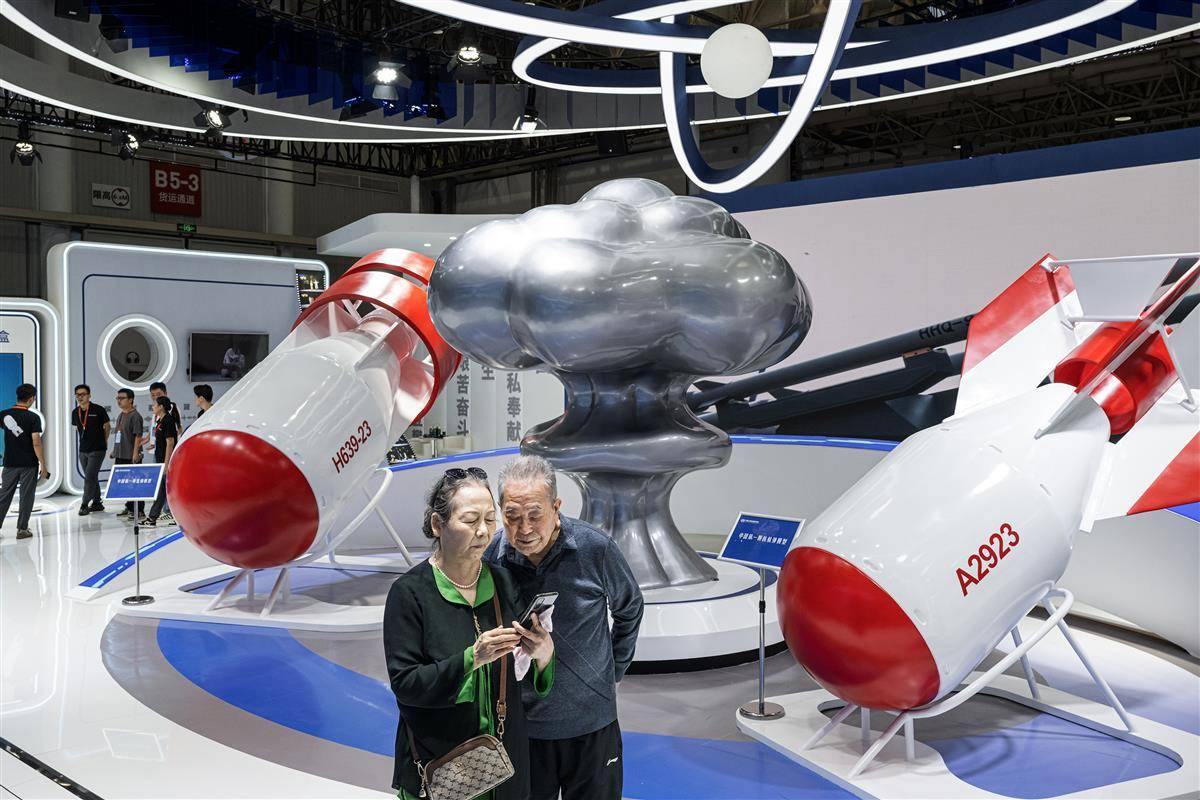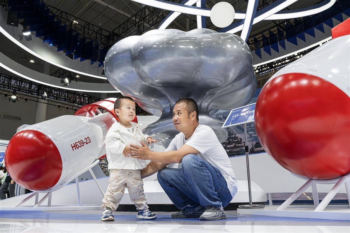 9月29日,中國(guó)第一顆核航彈模型和中國(guó)第一顆氫彈模型亮相首屆國(guó)防軍工文博會(huì)。(湖北日?qǐng)?bào)全媒記者 任勇 攝)