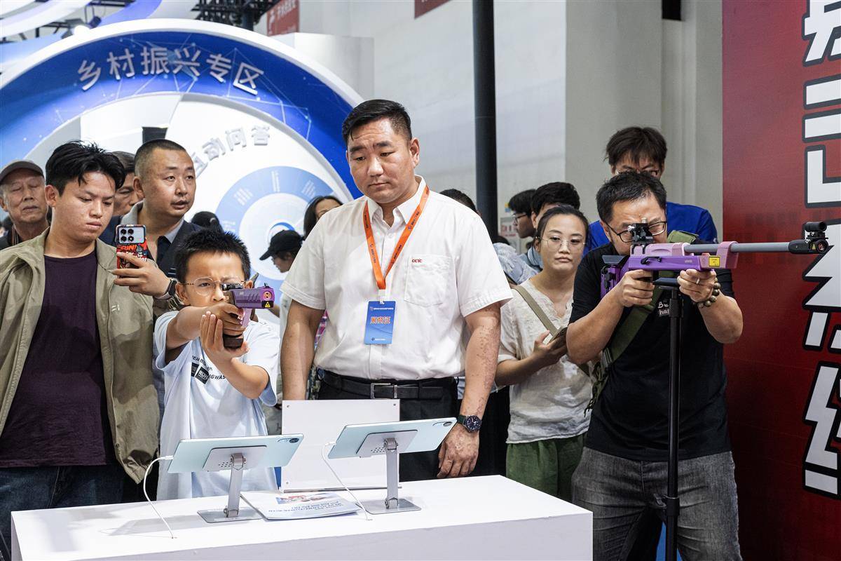 9月29日,市民在展會(huì)現(xiàn)場(chǎng)體驗(yàn)射擊。(湖北日?qǐng)?bào)全媒記者 任勇 攝)