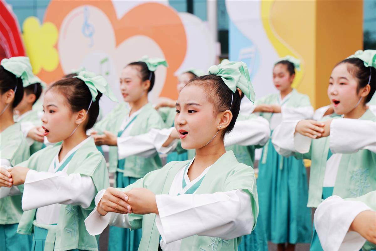 宜昌市猇亭區(qū)長江小學(xué)的孩子們演唱《閃耀明天》。