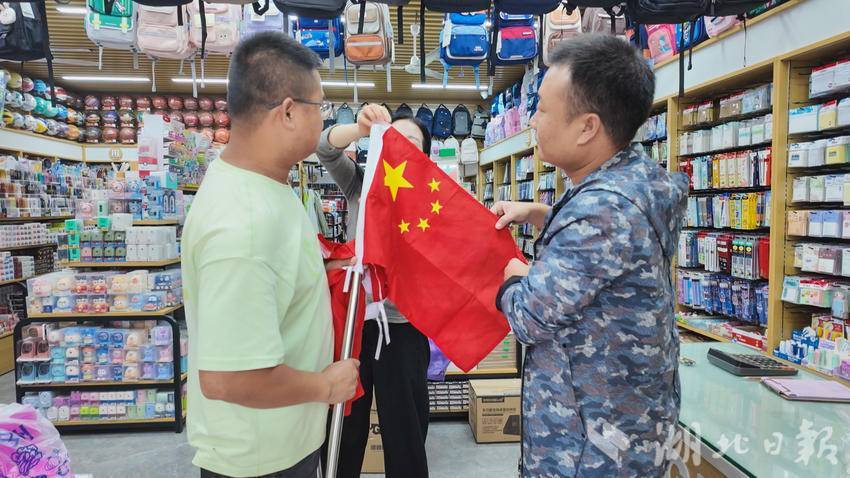 記者在崇陽縣一家文具店走訪時看到,五星紅旗被擺放在顯眼位置,吸引了不少市民和單位前來選購。國旗熱銷的背后,是大家對祖國的熱愛和對節(jié)日的期盼。