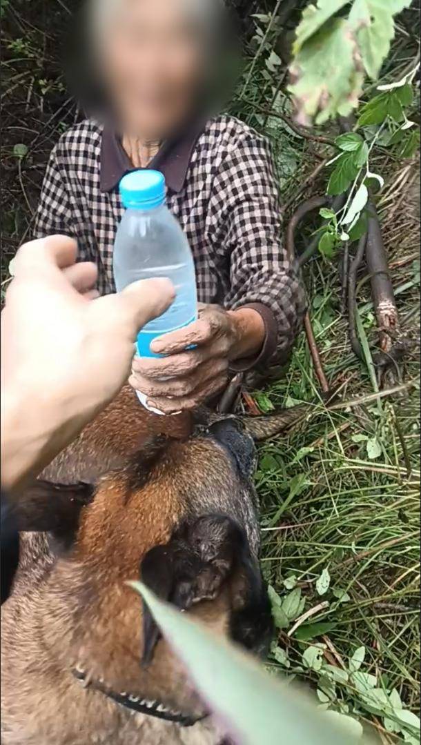 民警在警犬“追風(fēng)”帶路下找到失蹤老人。