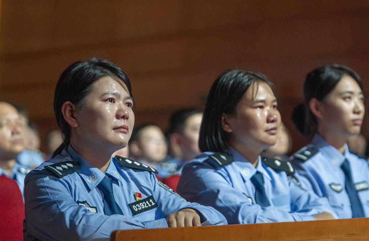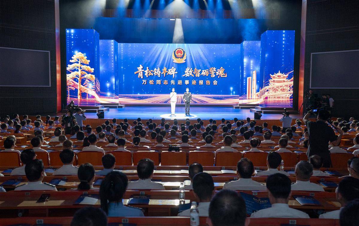 9月29日,因公犧牲的武漢民警萬松同志先進事跡報告會在漢舉行。來自湖北省各界群眾和公安機關民警代表集中聆聽英雄事跡,汲取奮斗力量。萬松生前任武漢市公安局科技信息化支隊三大隊警務技術四級主任,曾先后榮立個人一等功1次、三等功5次。從計算機專業高材生成長為警隊的關鍵智囊,他在技術崗位支撐協破重特大案件160余起。2025年5月26日下午,萬松在崗位上突發疾病,經送醫搶救無效,于次日不幸犧牲,年僅50歲。7月16日,中共湖北省委作出關于追授萬松同志“全省優秀共產黨員”稱號的決定,號召全省各級黨組織和廣大黨員干部向萬松同志學習。(湖北日報全媒記者 魏錸 實習生 鄧婷婷 攝)