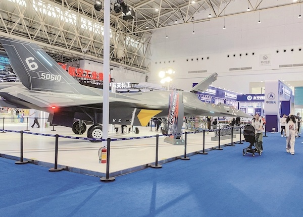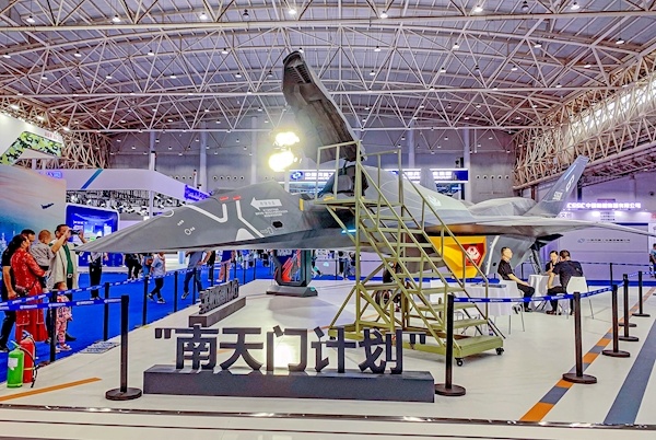 展會現場的“南天門計劃”戰機模型 攝影:楚天都市報極目新聞記者李輝