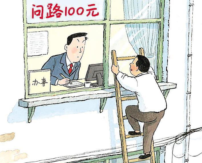 以“天價”問路費嚇退問路司機,“獅子大開口”索要問路費,這種行為不僅暴露了窗口人員的敷衍和傲慢,還反映了該堆場管理和服務的粗放無序。司機問路如若已成常態,堆場不應以為難司機來解決問題,而是要早早設立指路標識,提升服務的規范化和人情味,這是服務窗口最基本的職責。(文/常少華)