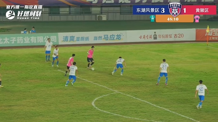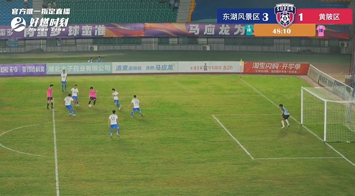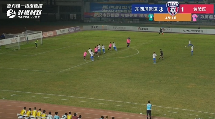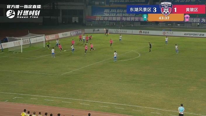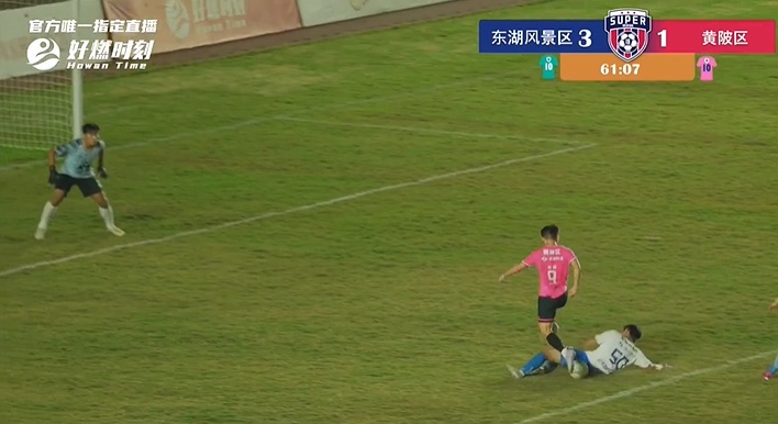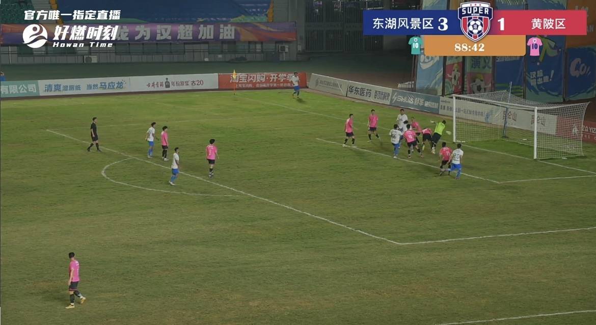 黃陂區隊55號替補登場隊員爭搶落點過程中,造成一次犯規,給對手送上一次右路定位球機會。東湖風景區隊防守過程中拉拽犯規,黃陂區隊同樣獲得一次定位球機會,面對黃陂區隊員配合,東湖風景區隊門將提前預判對手意圖,將球抱在懷中。