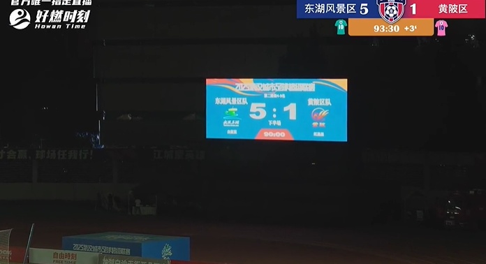 終場哨響,東湖風景區隊憑借穩固的防守陣型和默契的球隊配合,以5比1大比分獲得本場比賽勝利。
