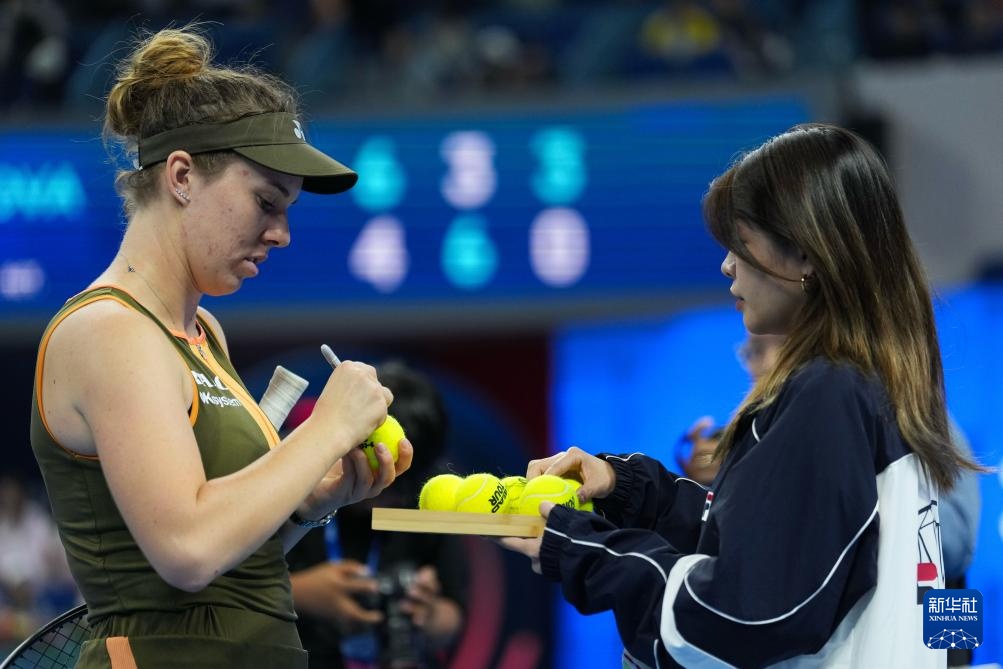 9月29日,諾斯科娃(左)在比賽后簽名。