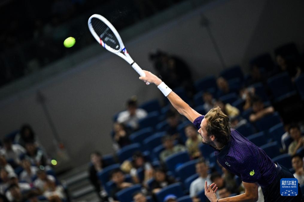 9月29日,梅德韋杰夫在比賽中發(fā)球。