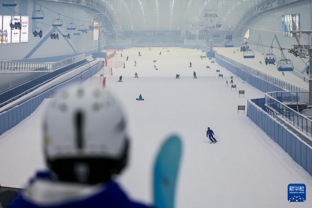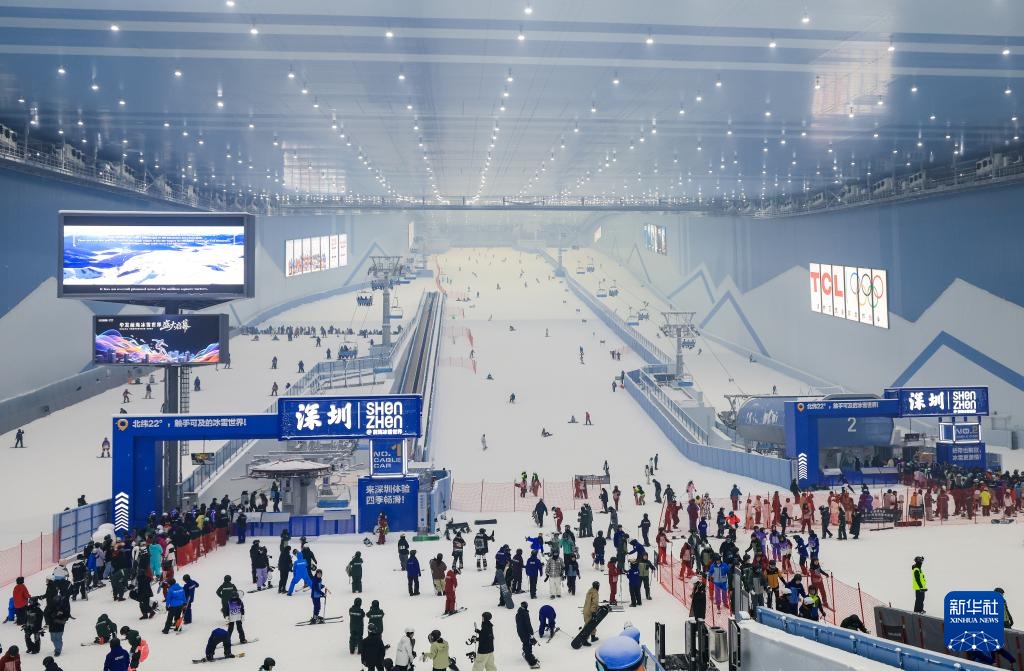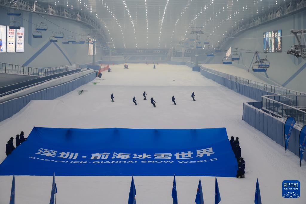 當日,深圳·前海冰雪世界正式開門迎客,粵港澳大灣區冰雪運動發展再添重要平臺。深圳·前海冰雪世界總建筑面積約10萬平方米,配備5條專業雪道,最大垂直落差達83米,單條雪道最長距離463米,涵蓋初、中、高級及地形公園等多種雪道類型,既滿足國際雪聯賽事標準,也具備訓練教學和大眾娛樂功能。