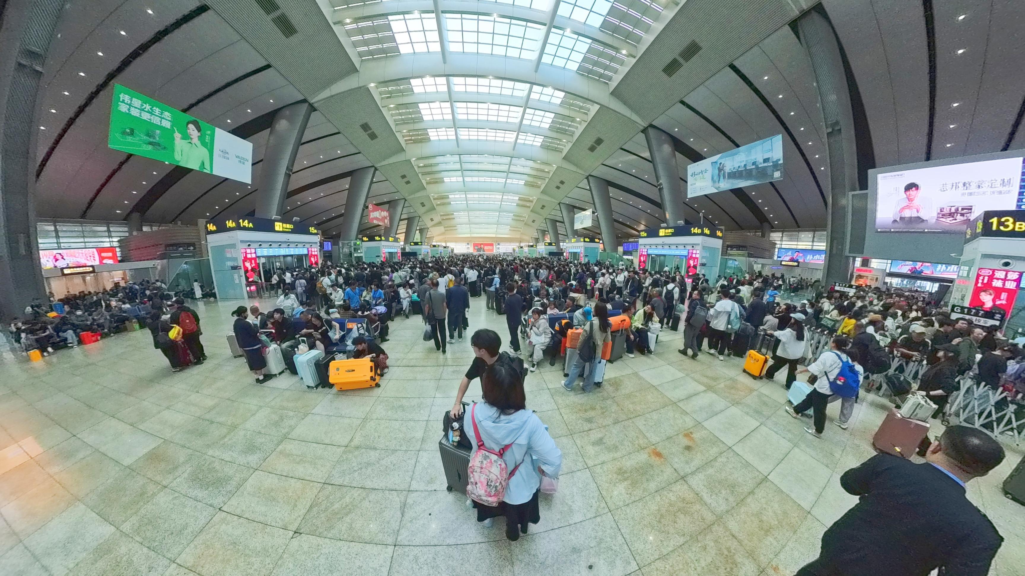 北京南站的旅客。人民網(wǎng)記者 王天樂(lè)攝
