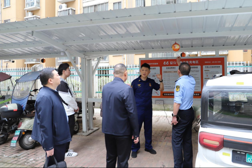 會(huì)議結(jié)束后,整治專班選取了奧林花園、玉帶園2個(gè)住宅小區(qū)查看停車棚數(shù)量、消防設(shè)施配備、充電樁運(yùn)行、電氣線路敷設(shè)情況,以及樓道、安全出口、疏散通道違規(guī)停放車輛、私拉電線充電等現(xiàn)象。現(xiàn)場(chǎng)對(duì)發(fā)現(xiàn)的隱患問題提出整改意見,要求物業(yè)限期整改,加強(qiáng)日常巡查和管理,及時(shí)勸阻和制止電動(dòng)自行車違規(guī)停放充電行為,引導(dǎo)居民規(guī)范停放、安全充電。