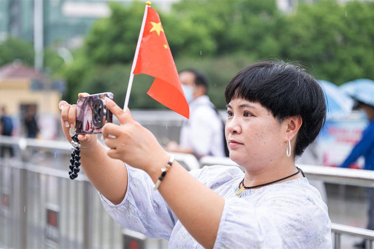 現場旅客手持國旗觀看快閃表演。