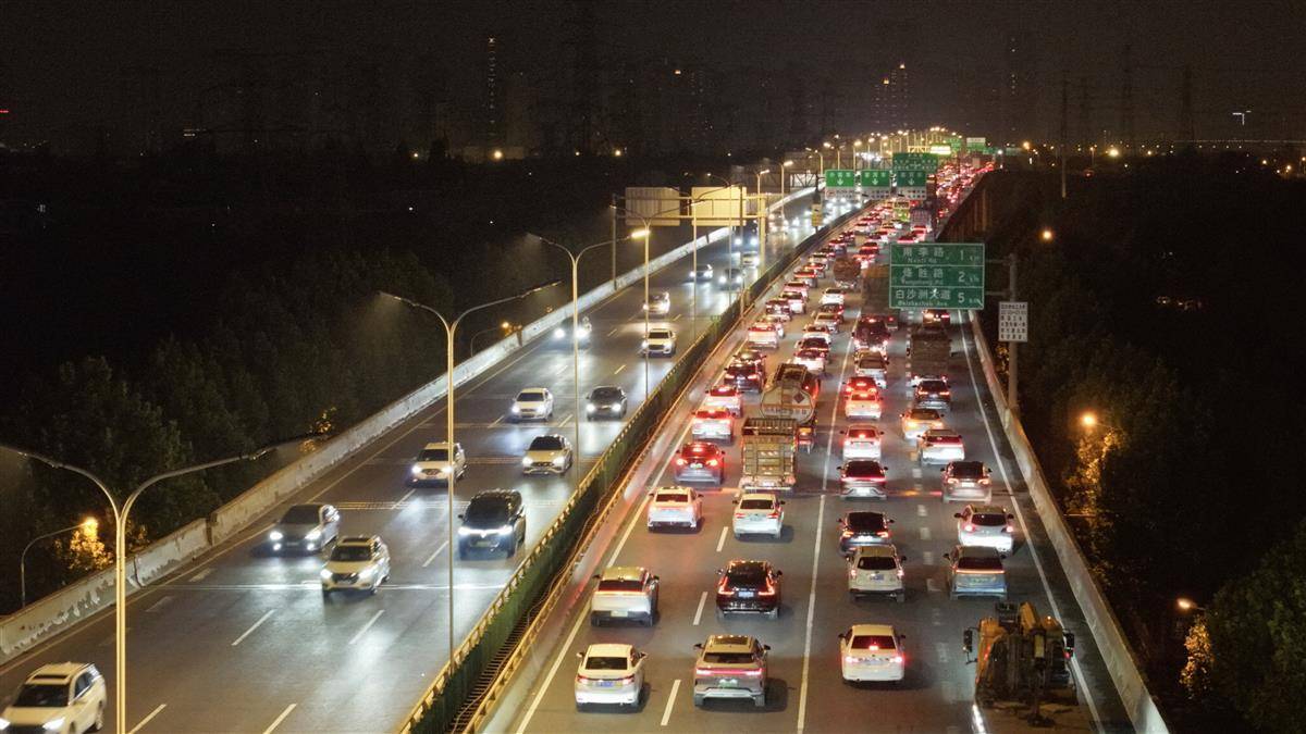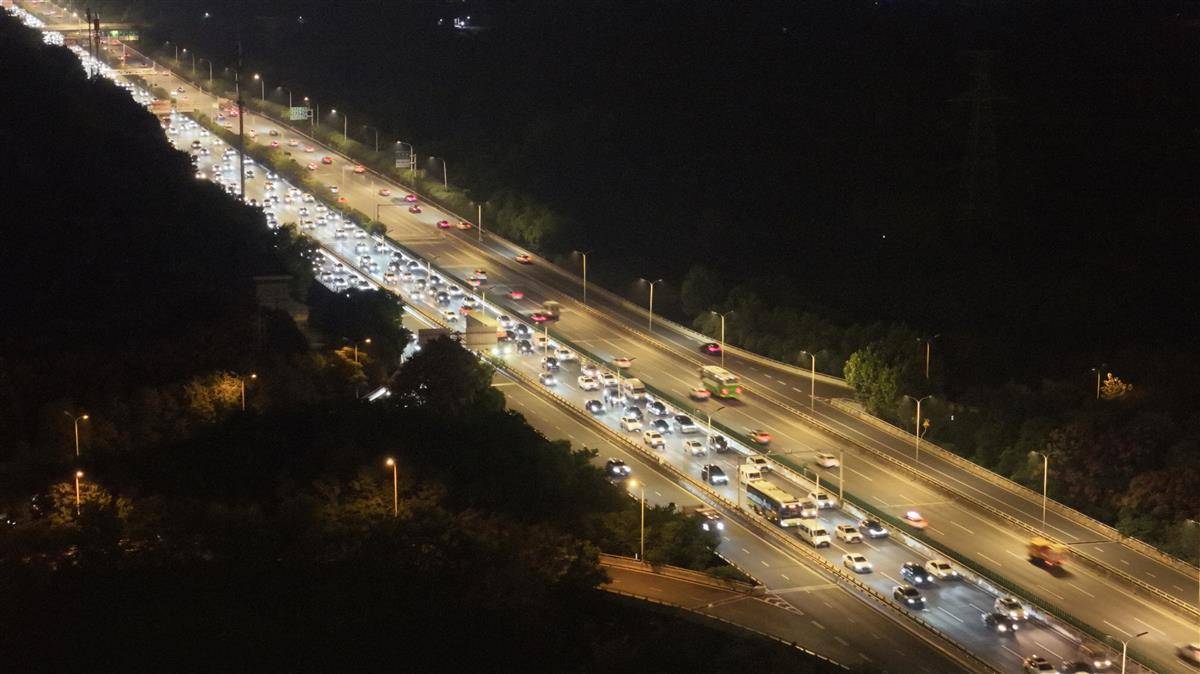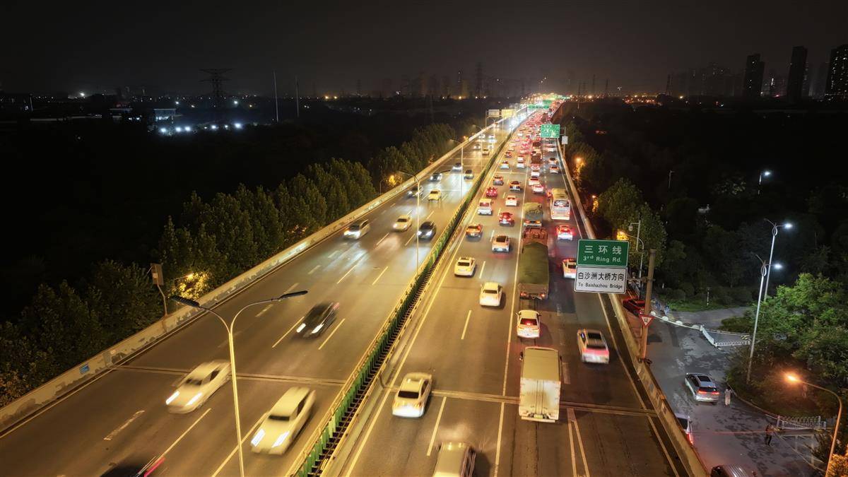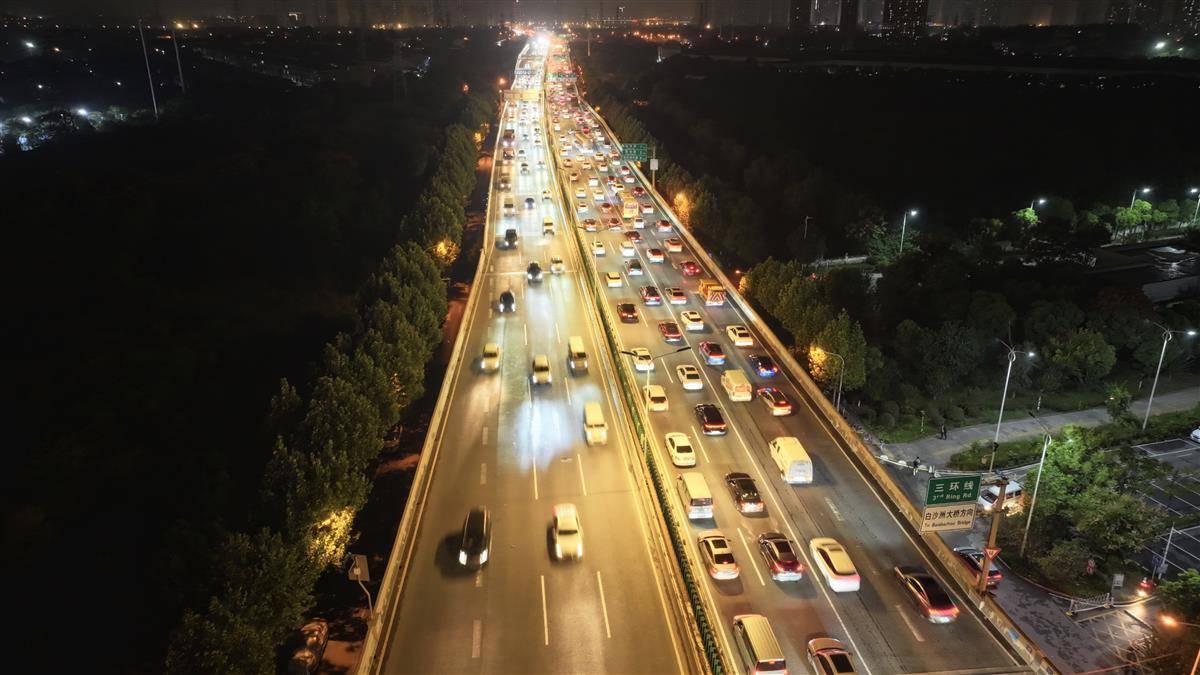 9月30日晚7時,武漢迎來國慶假期前最嚴峻的晚高峰,三環線南段車流如織,排起綿延長龍。(湖北日報全媒記者 陳少哲 攝)