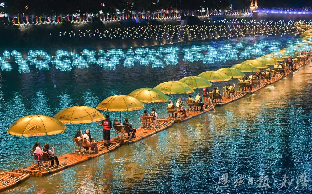 宣恩仙山貢水旅游區,湖北唯一以縣城核心區域為支撐的AAAA級景區,惹溪街的烤魚飄香,凌波橋的鐵花游龍,墨龍橋的夜宴貢秀,浪漫宣恩的煙火氣串聯起民宿集群、餐飲街區、露營基地與商業綜合體,短短半年接待游客900余萬人次,帶動旅游綜合收入超過60億元,“仙山貢水?浪漫宣恩”的火爆“出圈”,為全面振興注入了生機活力。