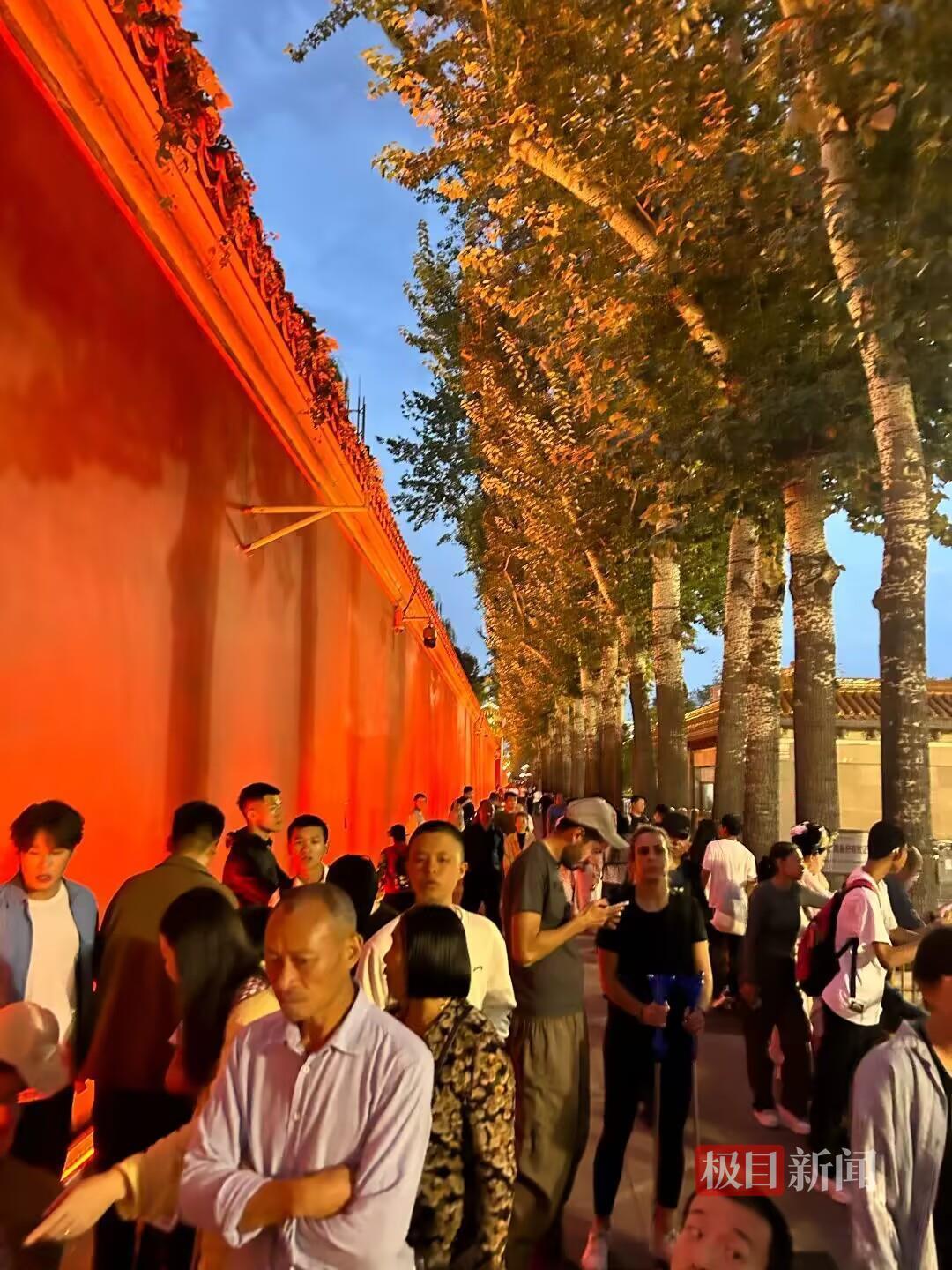 22時,極目新聞記者在天安門廣場東側安檢口看到,仍有不少游客陸續進入天安門廣場,等待明早的升旗。