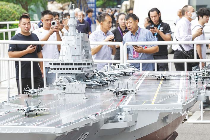 “福建艦”模型展示。(湖北日報全媒記者 任勇 攝)