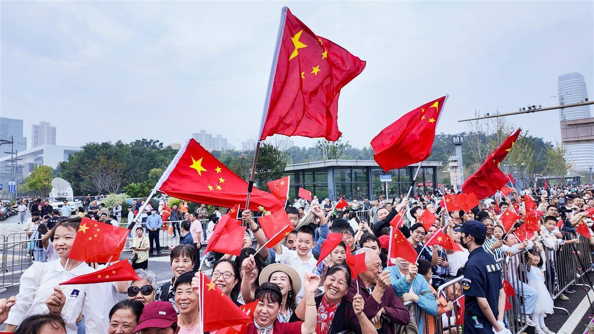 2025年10月1日,2025“河山添錦繡——文旅IP城市大巡游”在武漢光谷高新大道熱鬧上演,吸引大批市民游客前來圍觀,現場國旗沿街招展,節日氛圍十分濃厚。(湖北日報全媒記者 何宇欣 實習生 胡馨予 攝)
