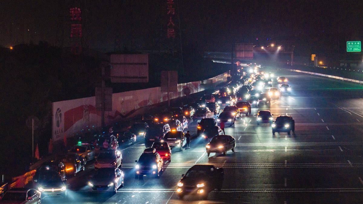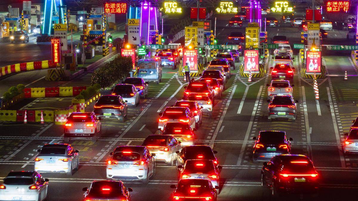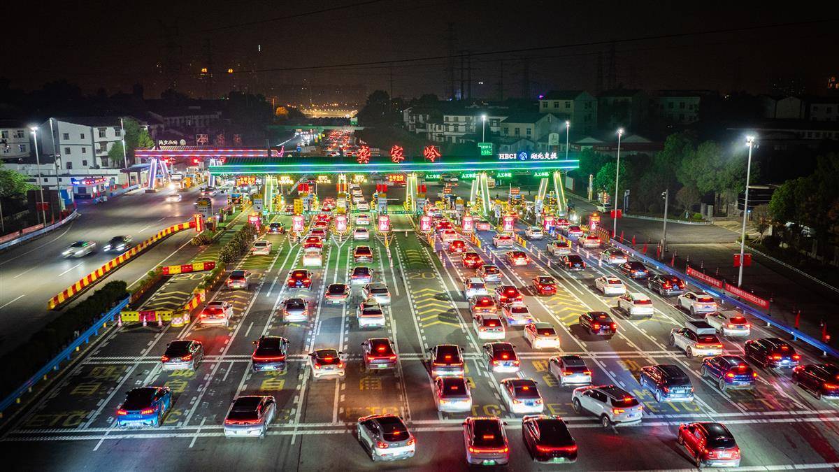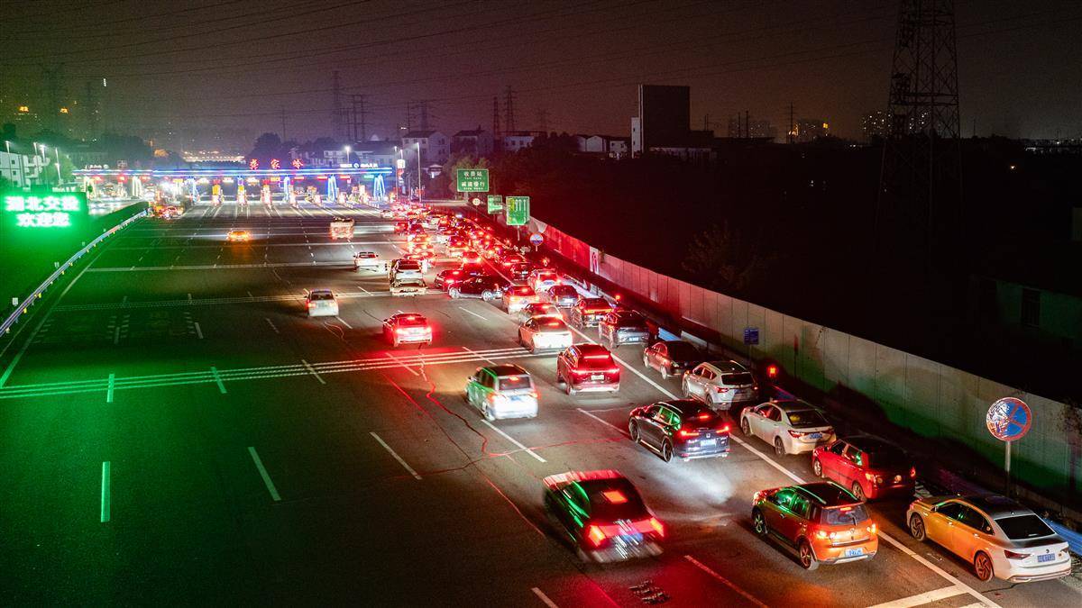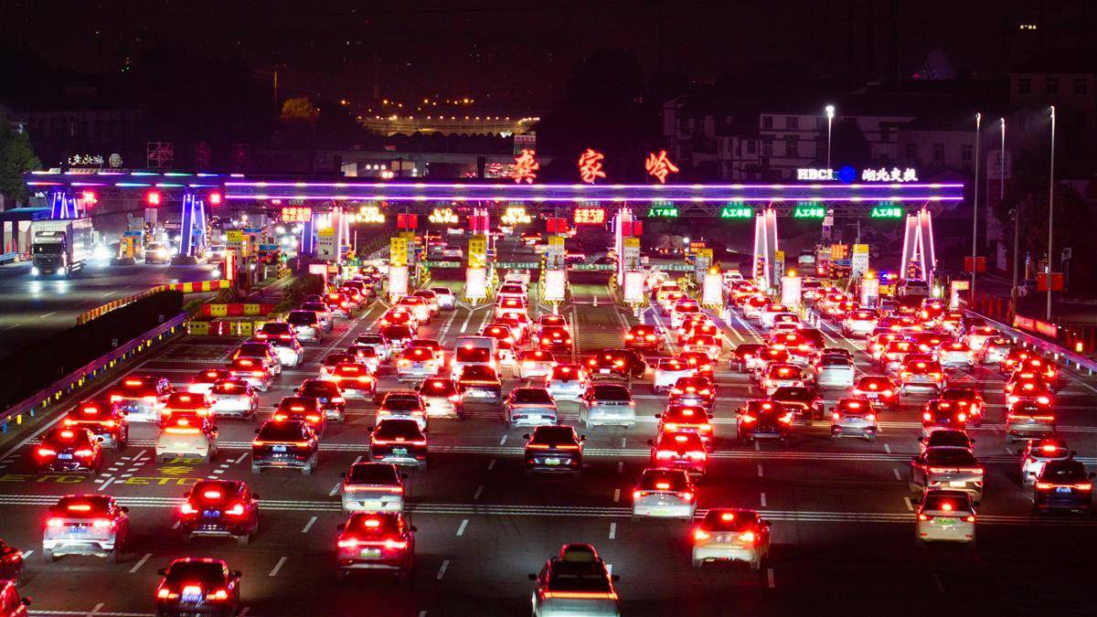 2025年10月1日,零點(diǎn),“十一”小長(zhǎng)假首日 ,在武漢市龔家?guī)X收費(fèi)站,大批等候免費(fèi)通行時(shí)段的車輛正連夜排隊(duì)進(jìn)入武漢。據(jù)高德交通大數(shù)據(jù)預(yù)測(cè),從9月30日16時(shí)起全國(guó)高速交通壓力逐漸增大,21時(shí)至10月1日1時(shí)將出現(xiàn)出行小高峰。(湖北日?qǐng)?bào)全媒記者 何宇欣 攝)