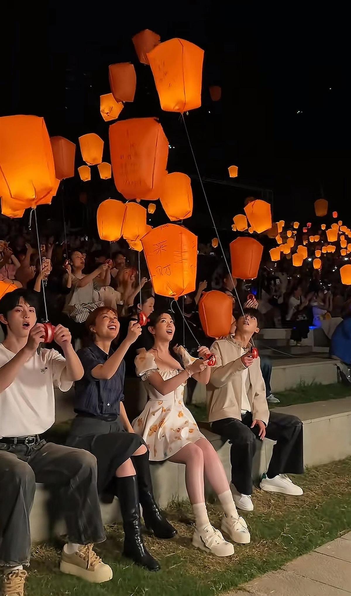9月30日晚,江西上饒葛仙村的千燈會現場熱鬧非凡,多名網友在社交平臺發布視頻稱,當晚偶遇演員吳昕、何洛洛、代露娃和郭俊辰。視頻畫面中,4人坐在景區臺階上,手中各拿著一盞寫有心愿的孔明燈,隨后與現場人群一同參與放飛環節——夜空中點點燈火搖曳升空,浪漫氛圍瞬間拉滿,引得網友紛紛感嘆“偶遇明星+千燈夜景,也太幸運了”。