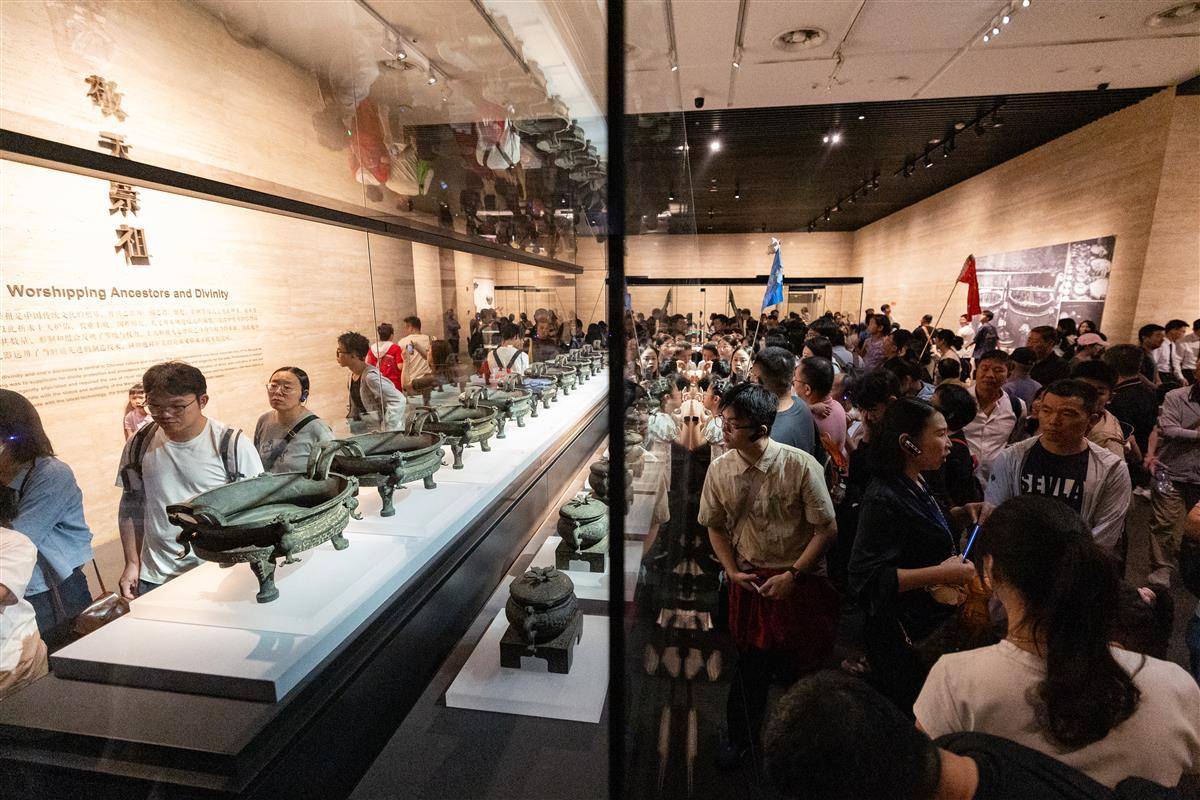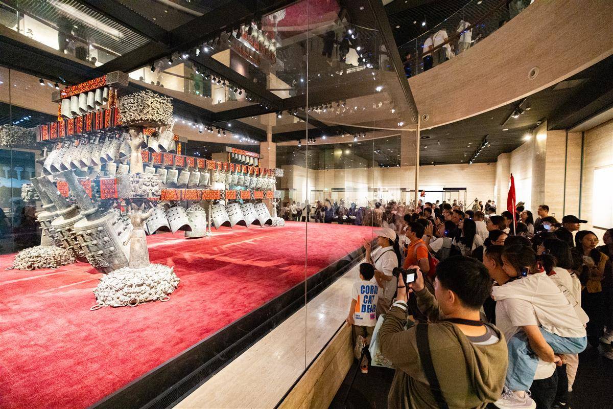 2025年10月1日,“十一”小長假首日,在湖北省博物館內(nèi),大批遠(yuǎn)道而來的游客在越王勾踐劍、曾侯乙等熱門展廳門前有序排隊參觀,感受荊楚文物的魅力,度過文化假期。(湖北日報全媒記者 何宇欣 通訊員 黃敏 攝)
