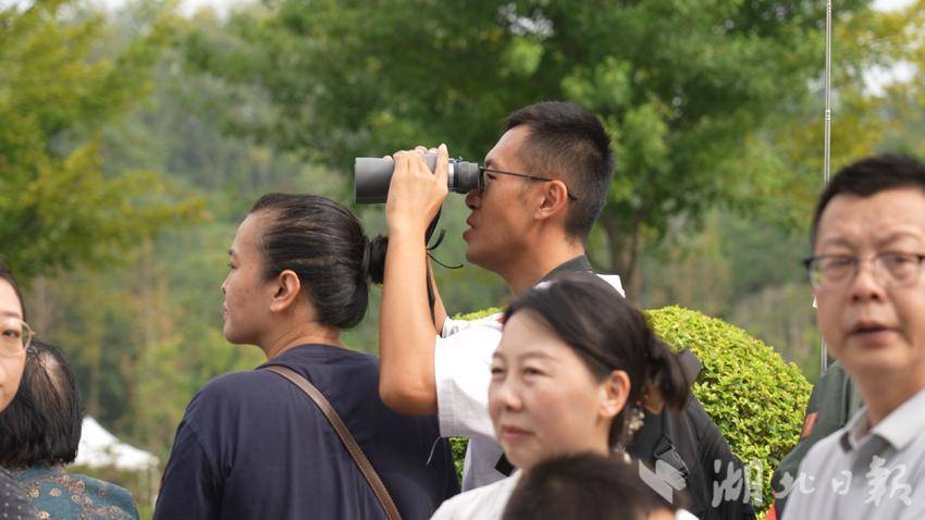 臉上貼著國旗、手持專業望遠鏡的張先生,是清晨從武昌專程趕來的“頭號粉絲”。為搶占前排的觀演位置,他不到清晨7點便已出門,跨江趕到光谷。