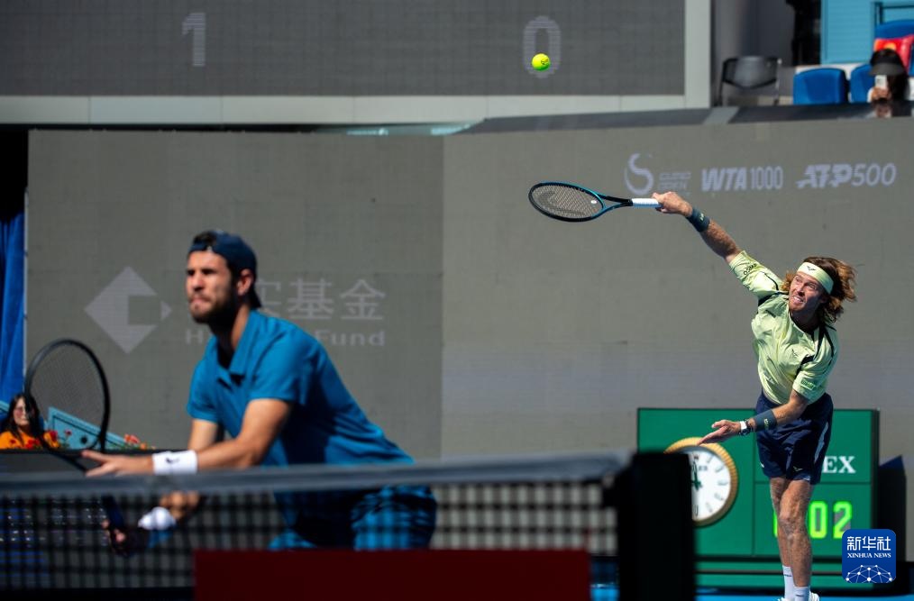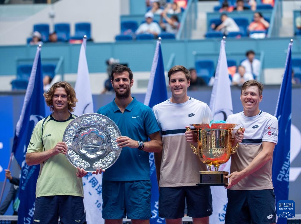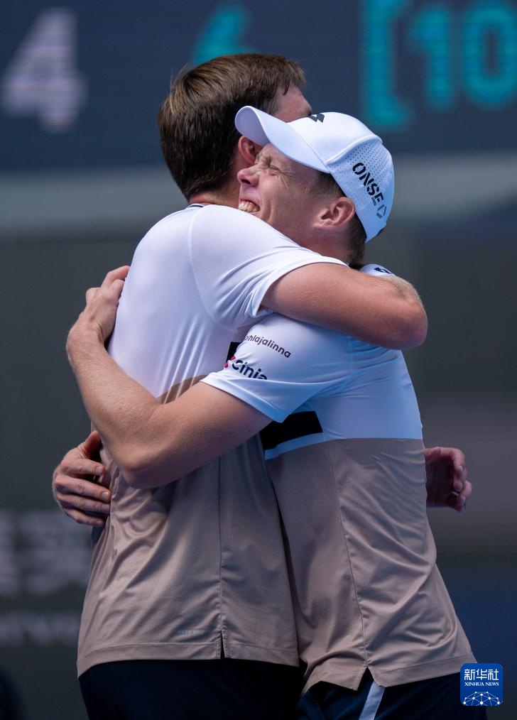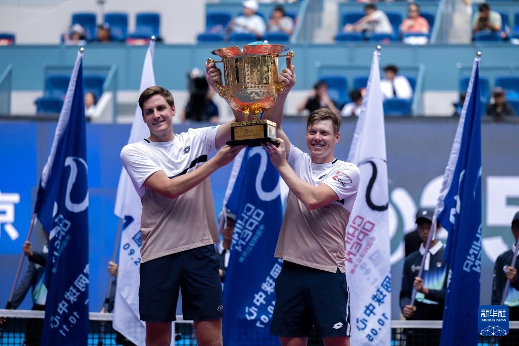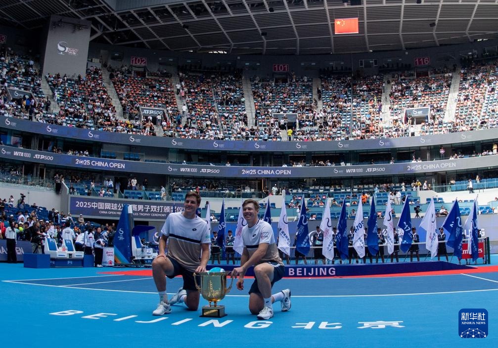 當(dāng)日,在北京舉行的2025中國網(wǎng)球公開賽男子雙打決賽中,海利厄瓦拉(芬蘭)/帕滕(英國)2比1戰(zhàn)勝俄羅斯組合卡恰諾夫/盧布列夫,獲得冠軍。