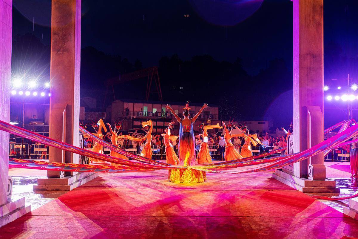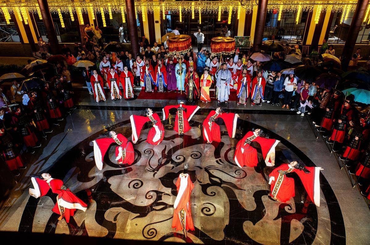 9月30日晚,游客在秭歸縣九歌巷子觀看演出。