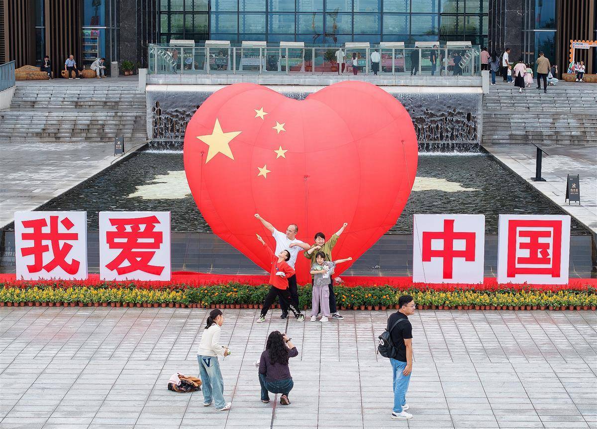 10月1日,游客在秭歸縣三峽移民博物館游玩拍照。國慶假期,秭歸縣舉辦形式豐富多樣的特色活動,吸引了眾多游客。人們祝福偉大祖國,樂享美好生活。(視界網 雷勇 攝)
