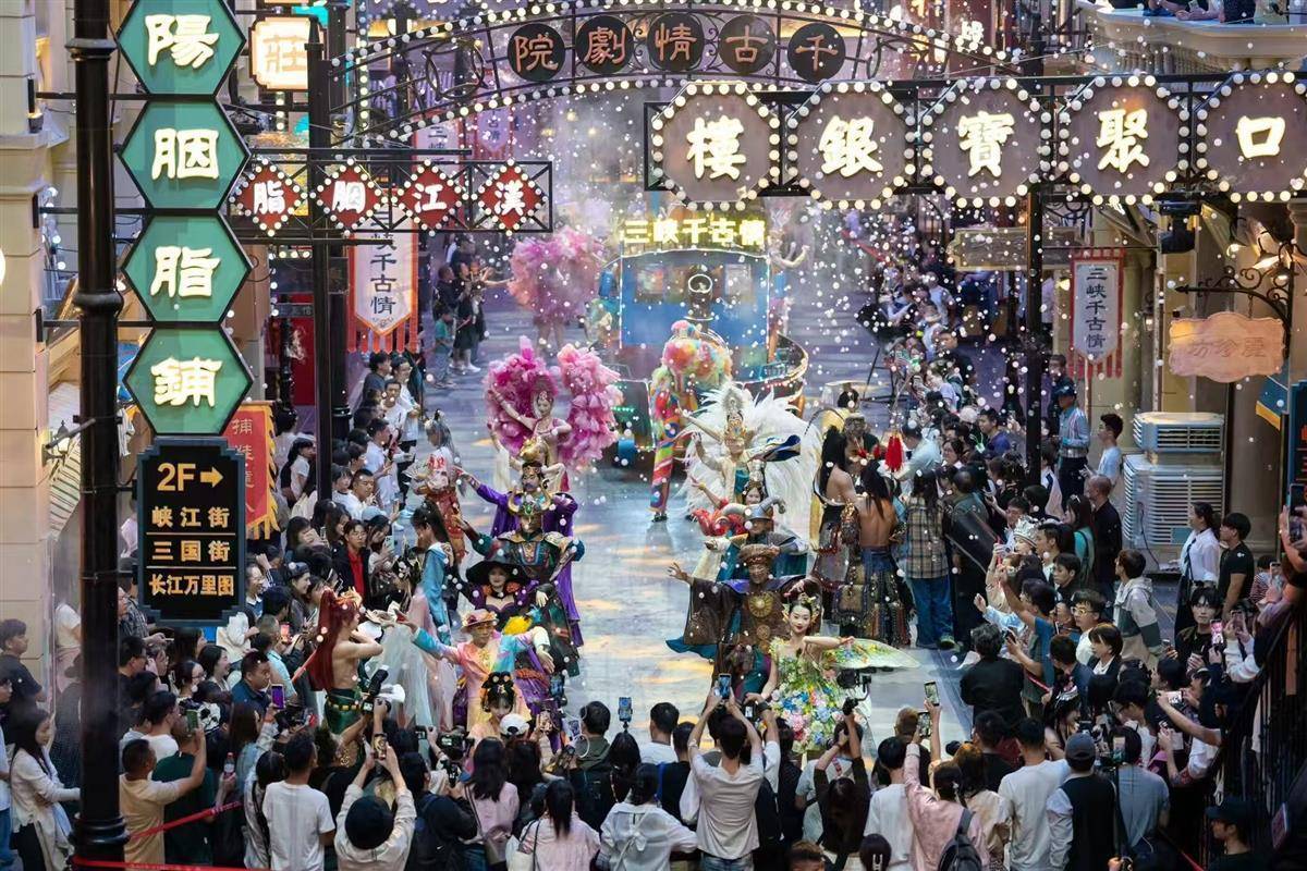 當日,“河山添錦繡——2025文旅IP城市大巡游”震撼上演,23臺巨型花車、近千名演員及38家國內外頂尖演藝團隊聯袂獻藝,吸引近10萬市民游客現場觀看。在黃石、荊門、恩施等地,“老廠新國潮·國慶共狂歡”“嫦娥奔月高空雜技秀”“民族同心 萬人合唱”等活動各具特色,清江畫廊景區更以江面巨幅國旗、游船“76”字樣編隊,點燃游客愛國情懷。