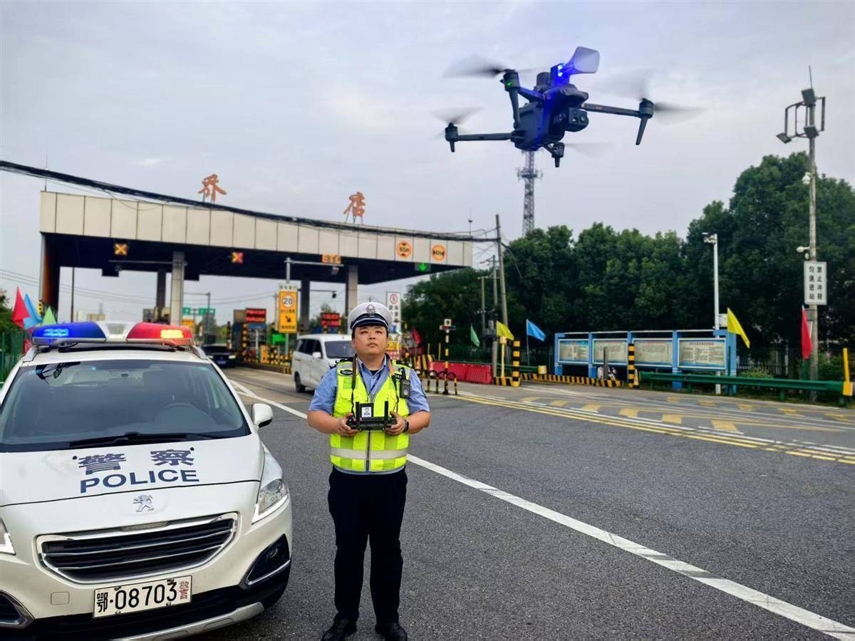 國慶中秋假期,湖北交警多個“無人機+快騎”應急快速反應小組活躍在省內(nèi)滬蓉高速漢川段、黃陂段,京港澳高速武漢段等大流量路段,全力開展節(jié)日期間疏堵保暢,服務群眾假期出行。全省2.7萬余名警力堅守一線,保障交通路網(wǎng)通行正常。