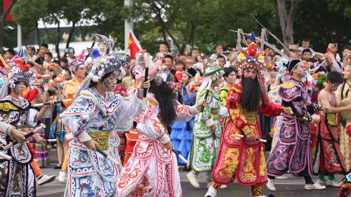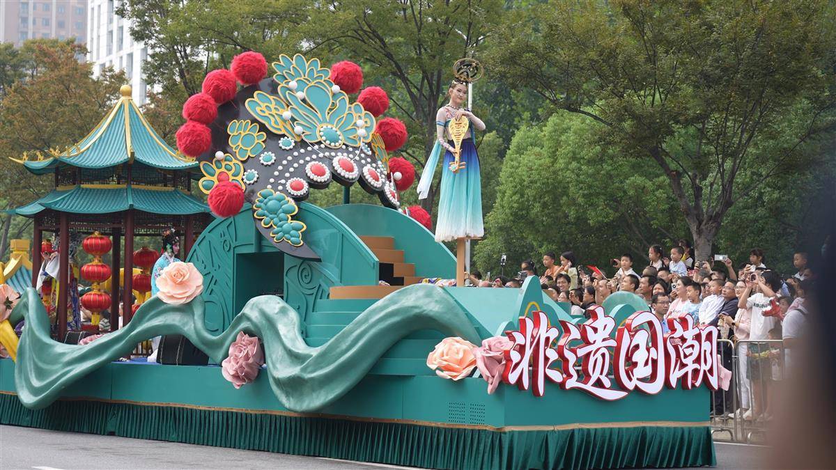 此次巡游方陣一車一主題,一車一故事,前六臺主題花車統(tǒng)領全局。從氣勢恢宏的“河山錦繡”到振奮人心的“初心如磐”,從底蘊深厚的“楚風漢韻”到精致絕倫的“非遺國潮”,從童趣盎然的“動漫萌寵”到活力四射的“全球狂歡”,各花車方陣匠心獨運,將地道的中華文化遺產(chǎn)與前沿的潮流元素碰撞出令人耳目一新的火花。此外,潮汕英歌舞、安塞腰鼓、山南藏戲、神農(nóng)架梆鼓、新疆《十二木卡姆》等民族表演也穿插其間,打造出眾多意想不到的“神仙混搭、夢幻聯(lián)動”的文旅場景。