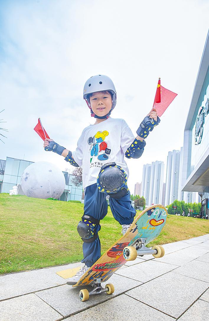 硚口區(qū)一家商場(chǎng)的廣場(chǎng)上,8歲的汪宇澤正用滑板演繹著速度與激情,以此度過(guò)自己的生日。他腳踏滑板,如雛鷹展翅,輪子劃過(guò)地面的“唰唰”聲,仿佛為這特別的日子奏響輕快旋律。躍起、旋轉(zhuǎn)、落地,汗水浸濕頭發(fā),他卻笑得格外燦爛:“每年生日,滿街都是國(guó)旗,這感覺(jué)真棒!我要滑得更好,像祖國(guó)一樣越來(lái)越強(qiáng)!”
