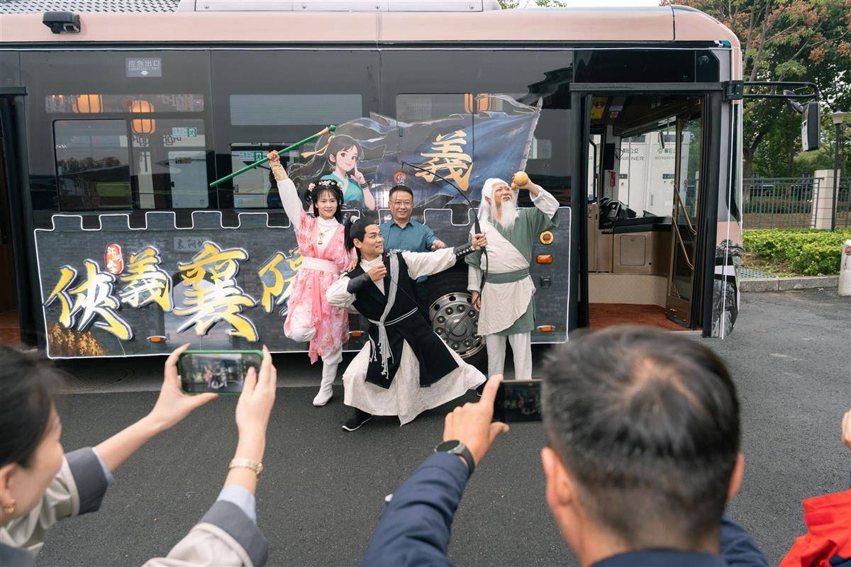 “郭靖”化身公交司機,“黃蓉”在車廂內翩翩起舞,沉浸式乘車體驗讓游客大呼過癮……10月1日,“俠義襄陽”旅游公交車從襄陽新能源汽車公園駛出。該主題公交將襄陽歷史文化與金庸武俠元素巧妙融合,車廂內不僅裝飾有燈籠、戰鼓等武俠風道具,還營造出濃厚的江湖氛圍。襄陽市公交公司介紹,該公交始發站為南湖廣場,途經古城十字街(管家巷)、諸葛亮廣場、白馬廣場、吾悅廣場等核心地標,終點站到吾悅廣場,“十一”期間,游客可免費乘坐體驗。(湖北日報全媒記者褚楠 通訊員葛鐵攝)