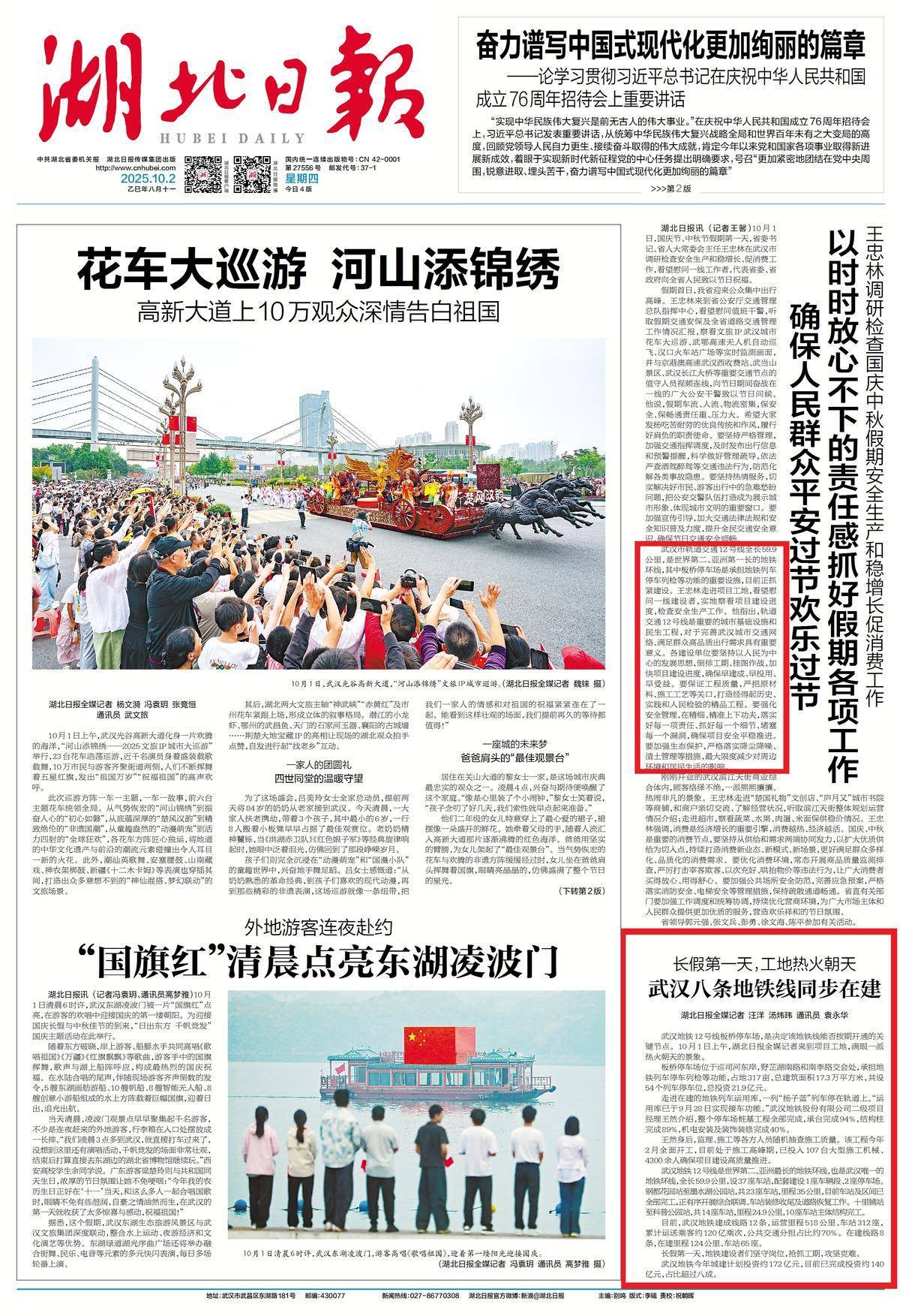 ▲2025年10月2日,湖北日報頭版聚焦武漢地鐵。